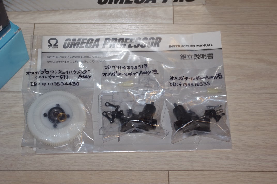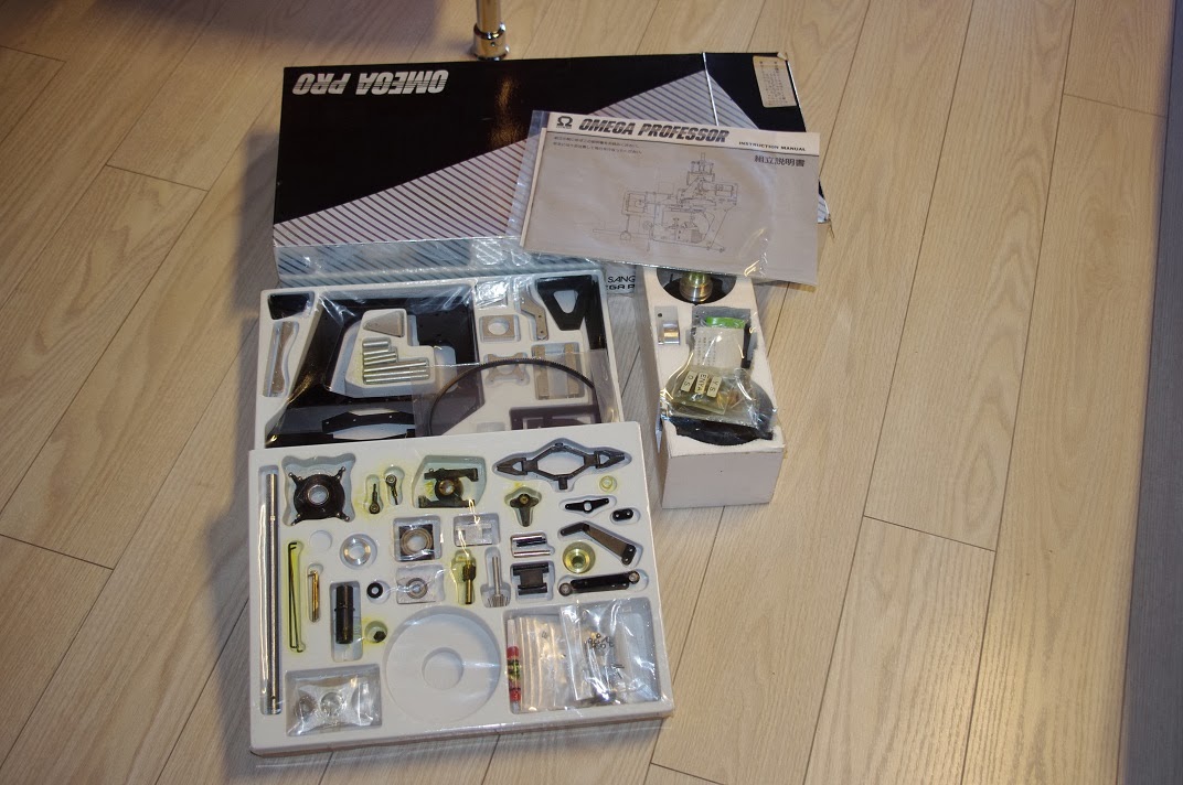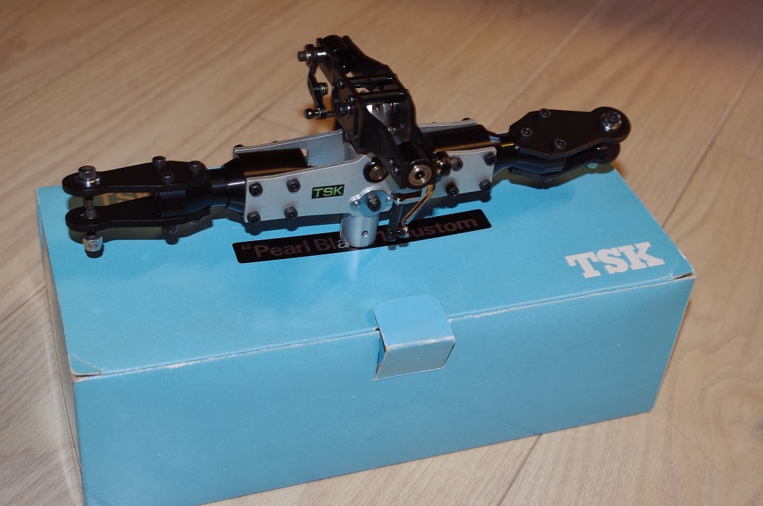Omega PRO (Frame KITche era la versione x fusoliere senza testa) in scatola, testa KALT K3-SB e la TSK "black pearl custom". La TSK era in assoluto la marca di upgrade piu' cara sul mercato dell'epoca. produceva anche le sue meccaniche che costavano diversi milioni di lire. Un capitale per il periodo; parliamo di anni 80, inizi anni 90. Ci sono anche i due mitici ruotini per i ns Omega pro