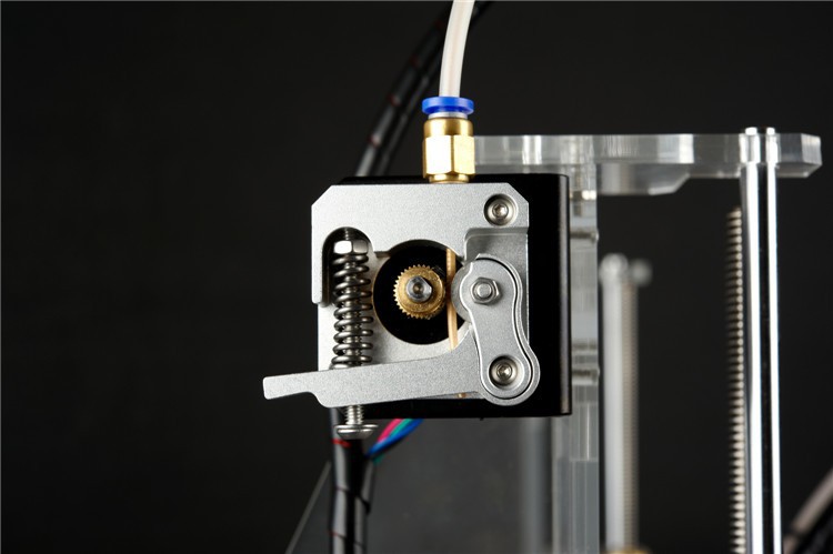 Sul carrello c'è l'HotEnd (la parte che si occupa di fondere il filo) mentre sul telaio hai il motore passo passo ed il trascinamento che si occupa di afferrare saldamente il filo e spingerlo con una certa forza nell'estrusore per farlo fondere ed uscire.