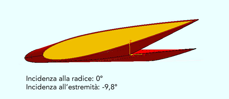 Comprendo bene che questo valore risulta dai fogli di calcolo e da software sofisticati….ma “a occhio”, l’ala realizzata con un tale svergolamento, fa un po’ impressione….