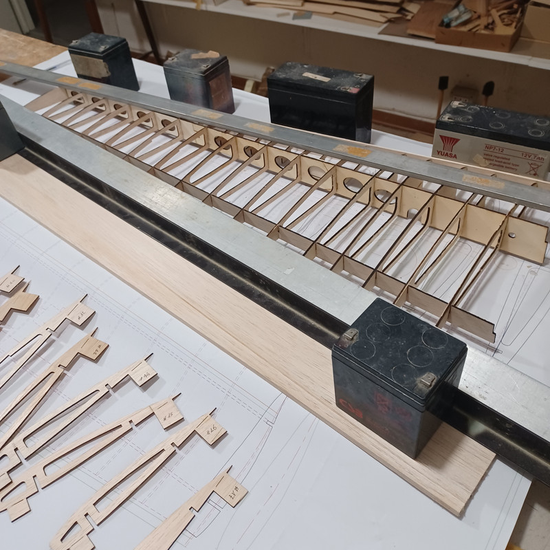 , poca voglia di lavorare, interesse in nuovi modelli, ho finalmente fornito i file di taglio al socio Franco che li ha prontamente trasformati col laser in pezzi pronti per il montaggio. Ecco la prima semiala .