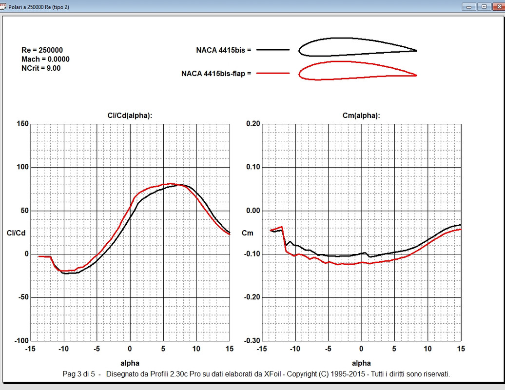 Questi i grafici per il profilo scelto di corda 70 mm e flap 20. Inclinazione di 2 gradi Nota come il Coefficiente di momento aumenti in valore assoluto. Il Cm serve a calcolare il momento generato dal flusso considerato applicato al 25% della corda. La formula per la determinazione è la stessa usata per portanza e resistenza . ![]() |