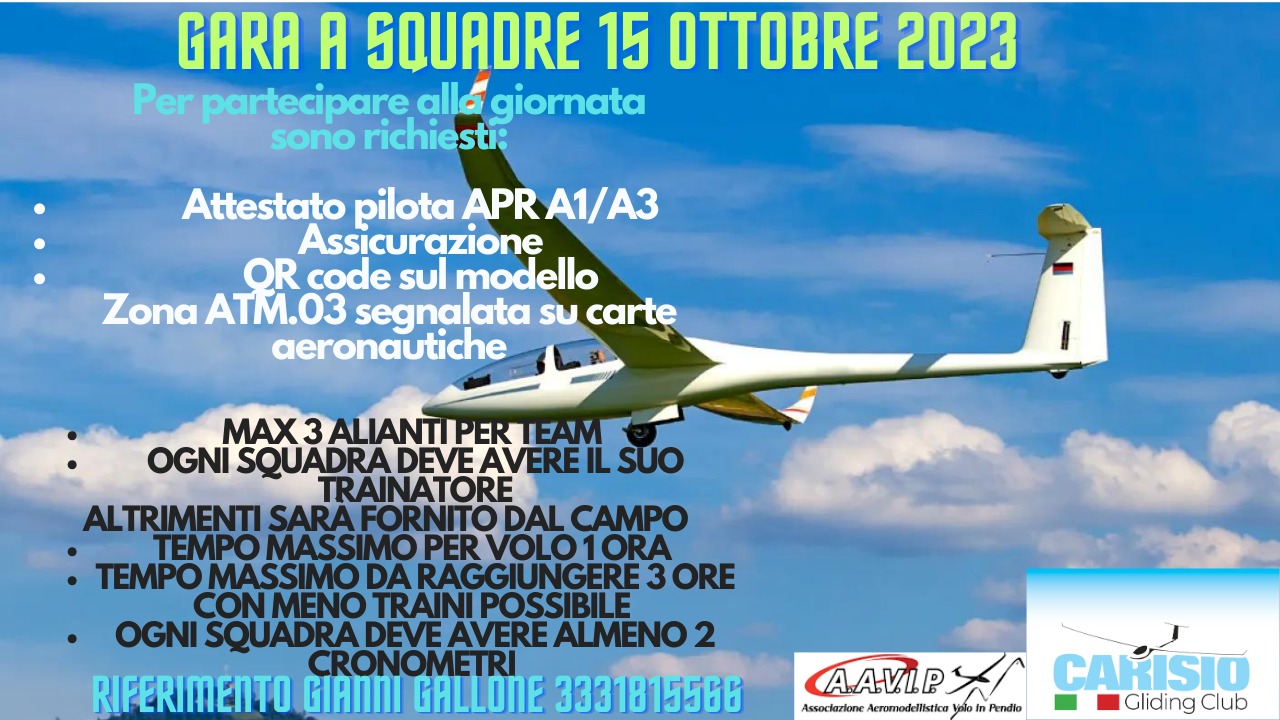 | Gara squadre 1 OTTOBRE 2017 CARISIO | trainatore | Aeromodellismo Aerotraino | 6 | 27 settembre 17 15:12 |