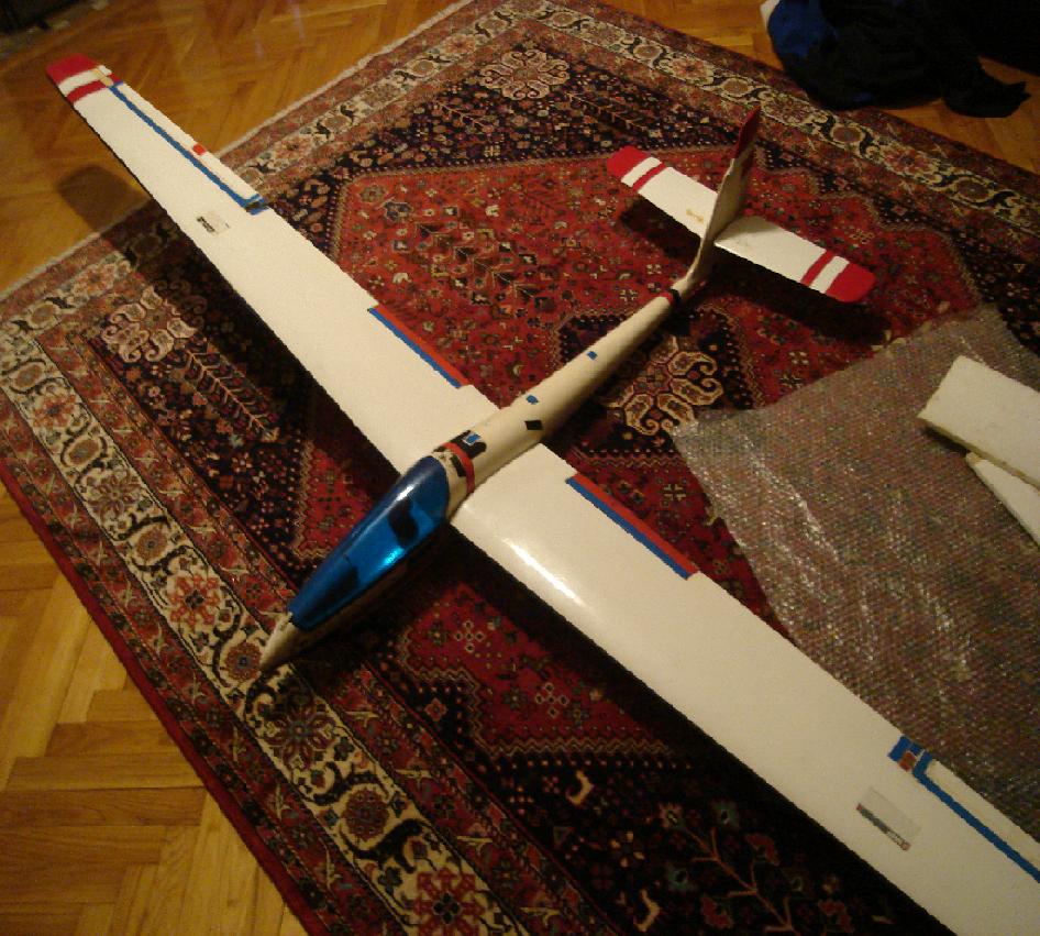Ciao a tutti! Per natale mi è stato regalato un vecchio aliante da 3,3 metri di un signore modellista purtroppo venuto a mancare.... Il modello è conciato piuttosto male ma mi è stato assicurato che così com'è vola... Ora vorrei restaurarlo un po' dal punto di vista estetico per renderlo un po' più "mio" diciamo.... Innanzitutto volevo chiedere dalle foto se qualcuno lo conosce, se sa com'è il volo se è da termica o da dinamica ecc... Elenco un po' di problema che ho subito riscontrato: - Baionette: sebbene il carman è rinforzato e sembra molto robusto, le baionette (2 da 30 cm di lunghezza e 6mm di diametri) mi sembrano fragiline, nella foto si può vedere quanto si piegano le ali appongiando le semiali a circa tre quarti della lunghezza delle stesse. -Piani di coda: vengono semplicemente infilati in 2 asticelle metalliche. Non entrano completamente e nella foto si può vedere che sono storte l'una rispetto all'altra. - Ingiallimento: tutta la fuso (in fibra) è ingiallita credo a causa del sole, oltre ai numerosi graffi.... E' possibile lucidarla o farci qualcosa? -Freni-flap: (rossi nella foto) sono storti uno rispetto all altro. -Toppe: il modello ha subito una notevole botta che ha spezzato la punta del muso, è stata riparata ottimamente dal punto di vista funzionale, peccato che poi sia stata ricoperta con delle toppe un po' antiestetiche( una sembra una tovaglia con fiorellini...), ce n' è un'altra notevole sulla pancia, ricoperta con nastro da pacchi... Che faccio tolgo tutto o lascio così come sono? -Spinotti: dei servi e dell'interrrutore sono inversi, i servi sono tutti futaba. Chiedo il vostro aiuto perchè il modello mi piace molto e sebbene sia conciato male credo abbia molte potenzialità... Lo faccio per me ma anche per la vedova del modellista, vorrei mandarle una foto del modello riportato agli splendori e magari in volo.... Ringrazio in anticipo posterò più tardi tutte le foto!