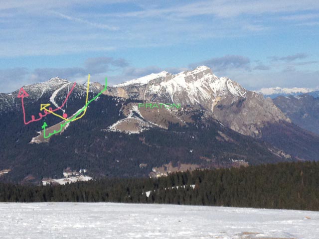 E' assai difficile far vedere in foto la zona di volo, lanciamo direttamente nel baratro con apposite fionde collegate sotto ai modelli. I nostri modelli montano un tubetto in acciaio sotto la fuso, dove inseriamo il perno ma è possibile collegare la fionda ai ganci di traino. La fionda è utile perchè i primi 15 m di baratro non portano, per cui si deve disporre di un braccio potente o della fionda. Non si vola con il vento che è quasi sempre assente (leggera brezza per tenerci freschi) bensì in termica, quindi al lancio non c'è aiuto dal vento frontale. Anzi, si vola benissimo anche se il vento viene da dietro. La linea rossa simboleggia un passaggio da destra a sinistra in val di gola, che è la zona di volo vera e propria, nel baratro che sprofonda per 800m sotto il punto di lancio. La linea verde simboleggia la "discesa dal monte", eseguita seguendo il percorso della vecchia pista da sci che partiva fin quasi alla vetta della Prima Cima (il Cornetto ha tre cime). La linea gialla simboleggia un "vengo da dietro", ho messo il tratto troppo arretrato, non si picchia infatti sul bosco che ci divide dalla zona dei pratoni, ma molto pù avanti, già sul verde del prato. Si sbuca sul baratro passando a valle della chiesetta, all'altezza desiderata. Ooops, alla bassezza desiderata. La zona denominata Pratoni...potrebbe essere il walalla, Gallina ce la indica da tempo ma non è facile da raggiungere per noi vecchi segaioli. La sopra il crinale a V permette il dynamic soaring e la portanza arriva generata da tre lati. In stagione alle dieci di mattina da Carbonare si possono osservare tre o quattro alianti full size in roccolo far quota sopra ai pratoni. Dal nostro luogo di lancio, la chiesetta, si inerpica il sentiero che seguendo il crinale unisce il Cornetto alla vigolana. E' il percorso per arrivare alla Madonnina, che della Vigolana è il culmine e il luogo più caratteristico e spettacolare. Ultima modifica di Manubrio : 12 gennaio 13 alle ore 20:46 | |
