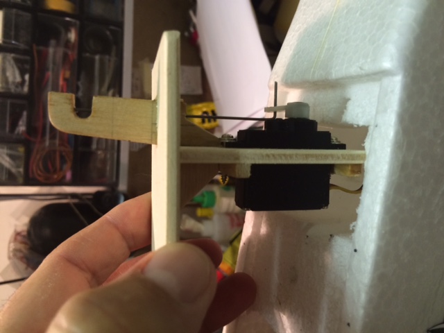 | Chiaro, è chiaro! Sullo SportCub del fratellino però abbiamo una complicazione. Il gruppo "servo/rinvii" dei flaps sta proprio in mezzo ai piedi a complicarci la vita. L'unica via d'uscita, consiste nel rivedere la posizione del servo flaps, tra l'altro poco sicura perché fissato con colla termofusibile in un recesso delle semiali, quindi vedo bene la soluzione di tagliare una basetta di compensato avio dove montare i due servi (sgancio e flaps) da infilare ed incollare verticalmente tra le due semiali non più separabili nella versione flappata, per via del rinvio ad "Y" che trasmette il moto del servo ai flaps. Stasera si opera...
