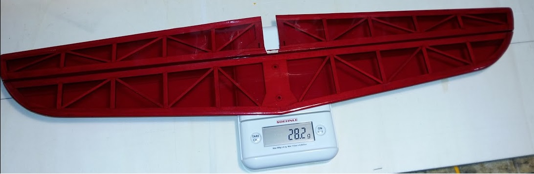 Ricopertura terminata. Ora la struttura vuota senza elettronica pesa semiali: 136gr+137gr ala centrale: 193gr fusoliera: 122gr deriva: 14gr stabilizzatore: 28gr La struttura vuota pesa quindi in totale 630gr Aggiungendo elettronica e batteria dovremmo (spero) arrivare a circa 1.030-1.050 gr con un carico alare di circa 17gr/dm2 |