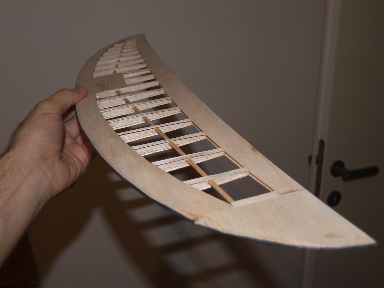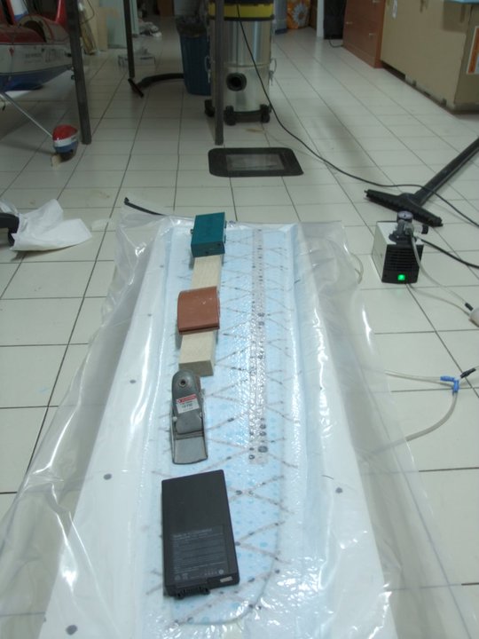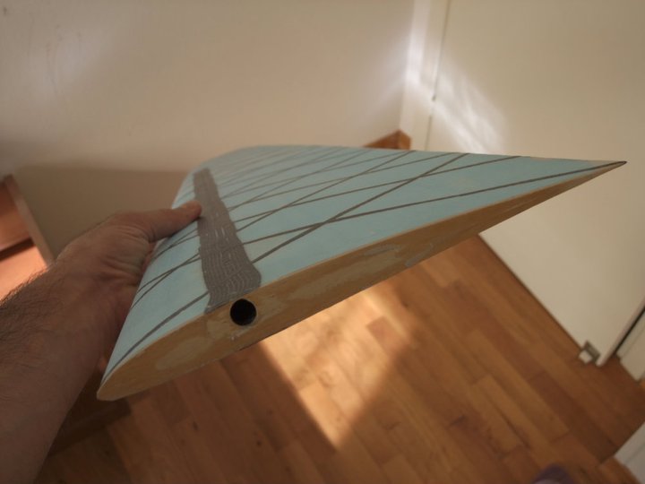 particolari costruzione ala stirodur celeste piu fibra 65 gr intreccio di roving 400 tex nastro di carbonio fino a 80% sopra e sotto ....e in corrispondenza sotto il nastro longherone balsa e roving 1200 tex