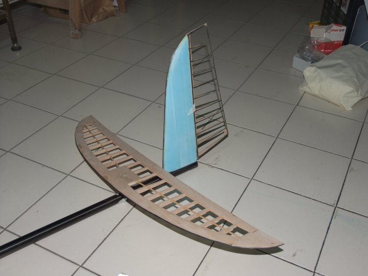allego alcune foto della costruzione del timone fisso sottovuoto e cassoni portabaionetta in balsa e porta tubi in carbonio