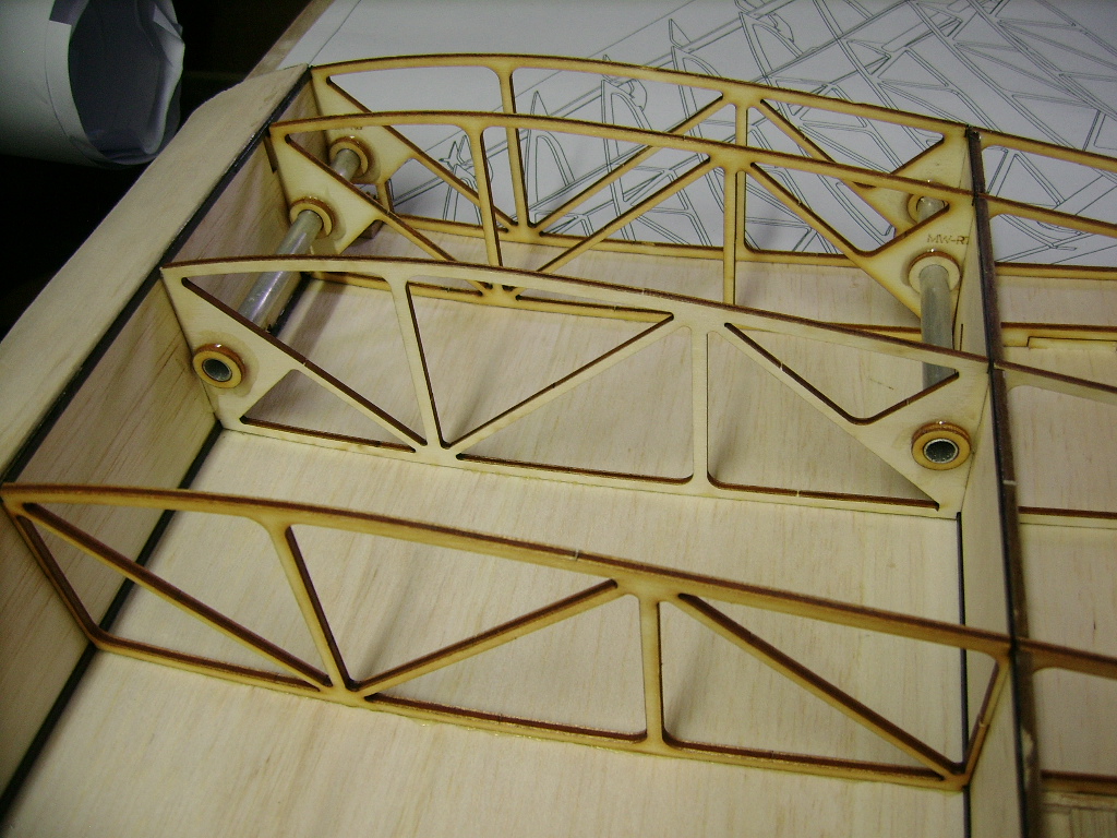 Ciao a tutti, il lavoro prosegue ad oltranza con la preparazione alla ricopertura delle gondole dei motori. Prima bisogna vedere che tutto sia a posto per l'inserimento della struttura a traliccio nell'ala: si inserisce e si incastra tirandola indietro e poi si può bloccarla in questa posizione con una "chiave", che potrebbe essere fissata con dei magneti In teoria, l'ala potrebbe essere rimovibile, ma non so ancora se sfrutterò questa possibilità Per la ricopertura delle gondole, per fortuna, nel kit sono presenti dei pannelli pretagliati al laser che aiutano parecchio, ma il lavoro richiede comunque molta pazienza Bisogna solo fissarle prima sul davanti e poi si chiude la "cofana" con tanta pazienza, qualche spillo e tanta colla alifatica La parte inferiore del motore centrale la fisserò quando avrò deciso come fare per il fissaggio del traliccio. Alla prossima.