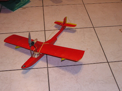 Importanti modifiche al piccolo idrovolante in balsa; l'ala, decisamente deludente, è stata completamente rifatta con modifiche radicali: 1. Il profilo non è più concavo convesso, ma piano convesso Clark Y 2. L'apertura passa da 50 a 65 cm, mentre la corda da 9.5 a 9; in questo modo, la superficie alare sale a 5,8 dmq contro i 4,7 che erano; il carico alare adesso è 3. Il diedro è aumentato decisamente 4. Il motore non è più brushless, ma a spazzole con elica 3x2 Queste modifiche dovrebbero curare i difetti del modello: in particolare, la difficoltà di staccare dall'acqua dovuta a troppa resistenza e poca portanza, da cui il nuovo profilo e l'aumento della superficie dell'ala; il diedro aumentato dovrebbe consentire virate più dolci mentre il motore a spazzole al posto del brushless dovrebbe evitare le imbardate dovute a eccesso di potenza che affliggevano il Pond 1.0 In effetti, il motore a spazzole l'avevo provato sulla vecchia ala, e il miglioramento era notevole; domani, tempo permettendo, proviamo anche la nuova ala. Ecco il pond "prima della cura" E COME è ADESSO: Particolare Ai più attenti non sarà sfuggito il fatto che l'ala non è più ricoperta in carta, ma in termoretraibile. La carta è bella, ma il tendicarta puzza e coi bambini in casa bisogna fare qualche sacrificio
