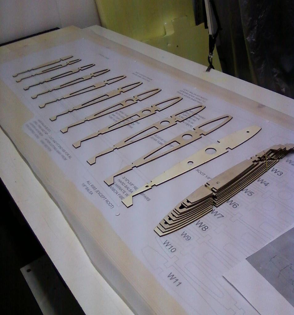 salve a tutti,era da tempo che gli giravo intorno,costruirmi un f3a da competizione(2 metri apertura alare e 5kg di peso in ordine di volo, in struttura lignea.la base di partenza(progetto) è ricaduto sul modello insigh v2,che a detta di molti(rcuniverse)e un modello facile e lento nelle manovre,opportunamente rielaborato(si tratta piu di un restyling,piu alcuni accorgimenti in voga adesso nelle competizioni).ho mandato i progetti al signor paolo di Easy Cnc - Servizi CNC per modellismo Taglio Laser e Tradizionale persona gentilissima,e dopo neanche 10 giorni mi ha mandato una sorta di short kit ,tutto tagliato al laser(ottimo lavoro).ora non mi rimane che costruire, a dimenticavo il modello sarà elettrico,con una apertura alare di 187cm per una lunghezza di 198cm. ho iniziato a costruire l'ala,fissato i longheroni,fissato portabaionetta in carbonio(25mm) finora tutto incollato con ciano medio, ad esclusione del portabaionetta con epoxi 30m. scheletro delle ali finito,ricavato box porta servo,incollato bordo d'entrata,ora non rimane che ricoprire con tavole di balsa da 2mm |