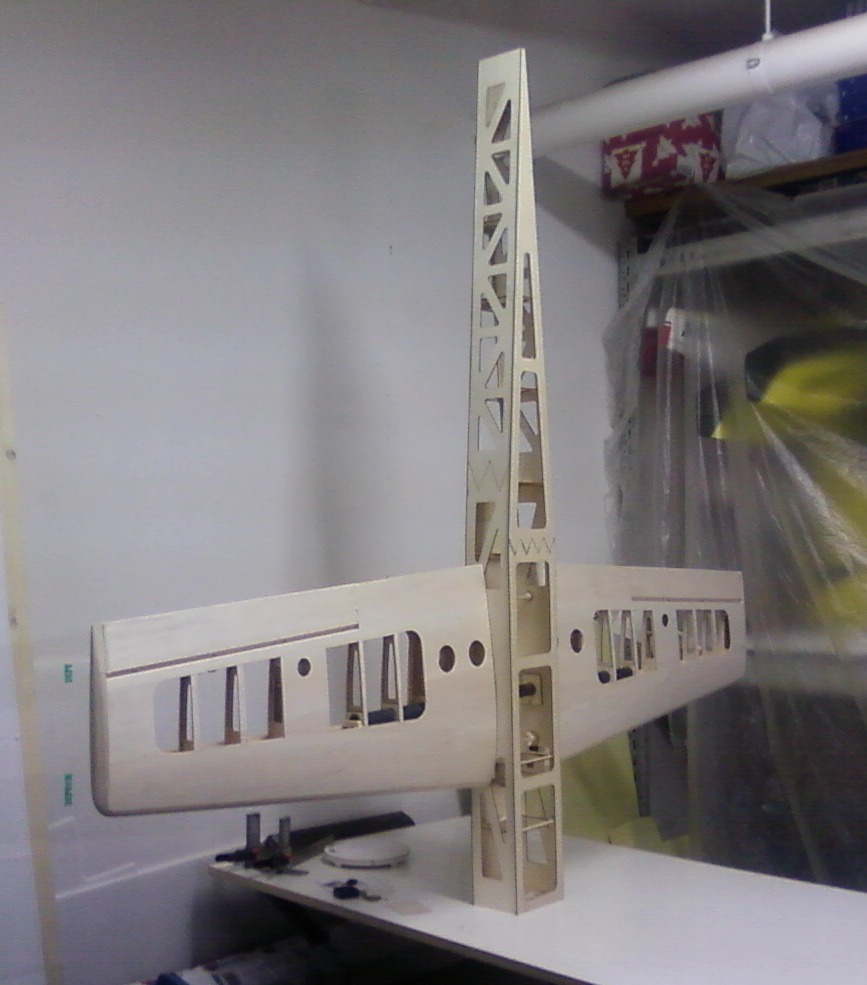 piani di coda ultimati,ricoperti con foglio di balsa da 1,5mm,montati i registri per l'incidenza alare,incollato con ciano e questa volta ho usato anche la poliuretanica della pattex per il rivestimento(messa con il contagocce perche si espande,devo dire che mi sono trovato molto bene,espandendosi va a colmare piccole lacune garantendo una buona presa,ed è anche leggera),montate le solite cerniere a perno da 3mm,il peso del singolo pianetto come lo vedete in foto è di circa 70gr dx(72gr sx).fissato il fodero(carbonio) portabaionetta sulla fusoliera ed il perno in acciaio da 4mm per i registri(incidenza).montati i pianetti sulla fuso con incidenza a zero con le ali e asse motore. |
