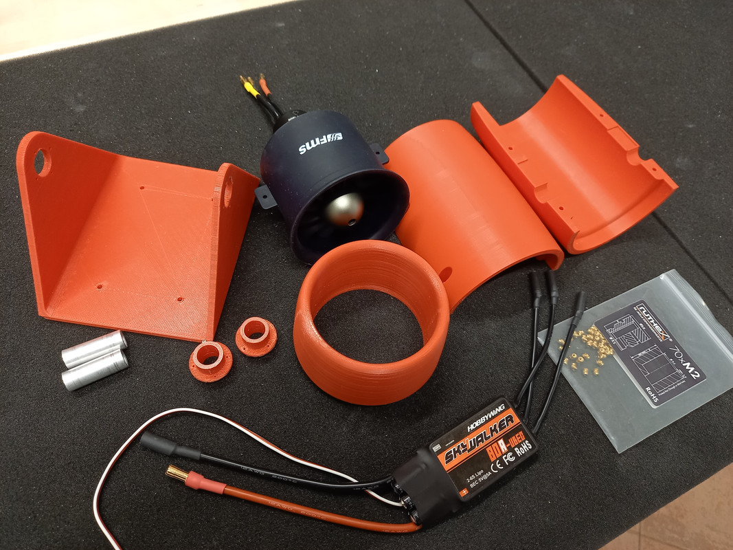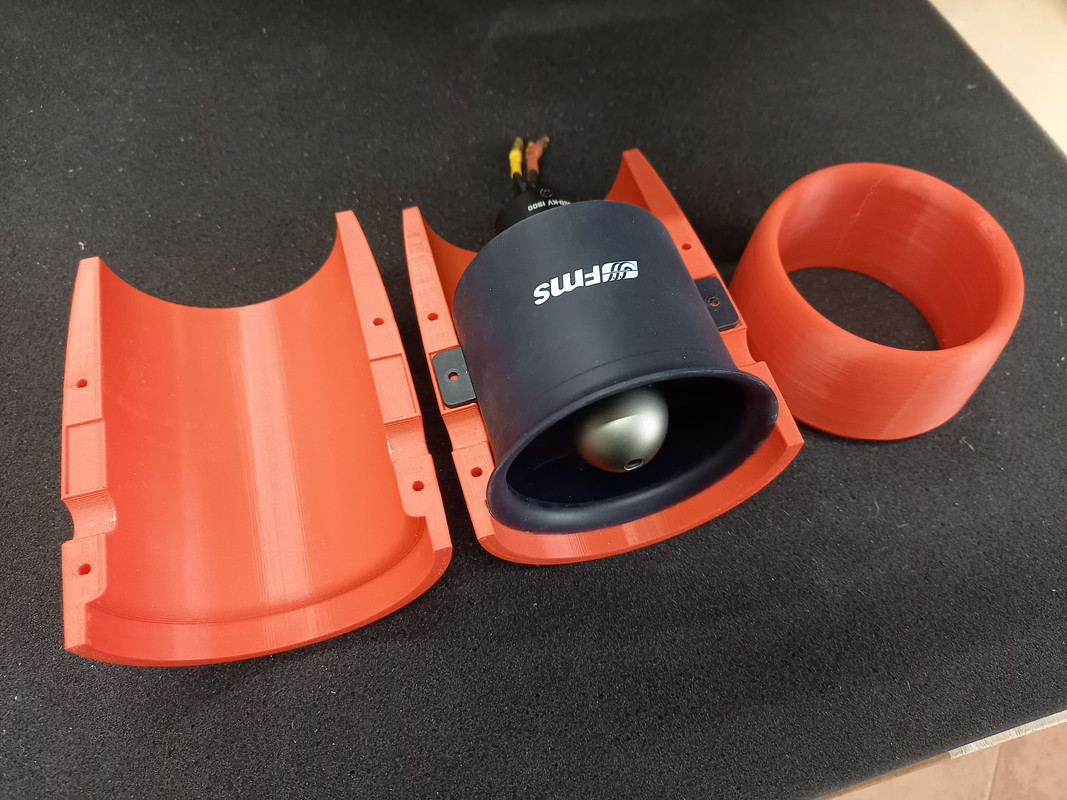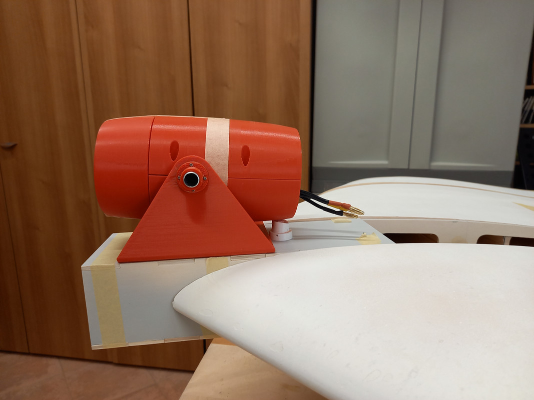 La ventola a incidenza variabile avrebbe permesso (forse...) di ridurre un po' l'effetto di rotazione della prua del modello, in fase di decollo dall'acqua. Per evitare di aggiungere altro peso e complicazione ho lasciato la ventola in posizione fissa. Tutte le eventuali modifiche al modello, in particolare ai galleggianti, sono rimandate a dopo un eventuale decollo da terra. Per adesso mi accontento. ![]() q | |