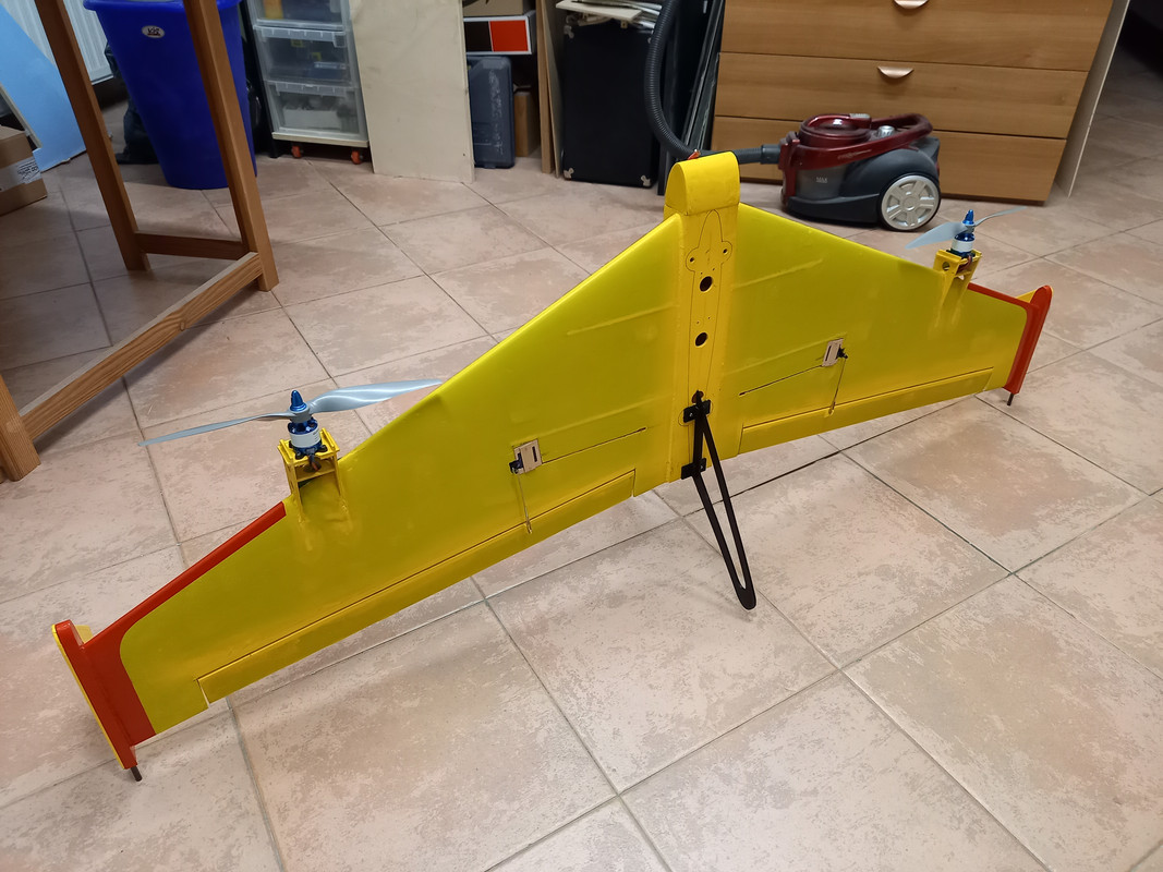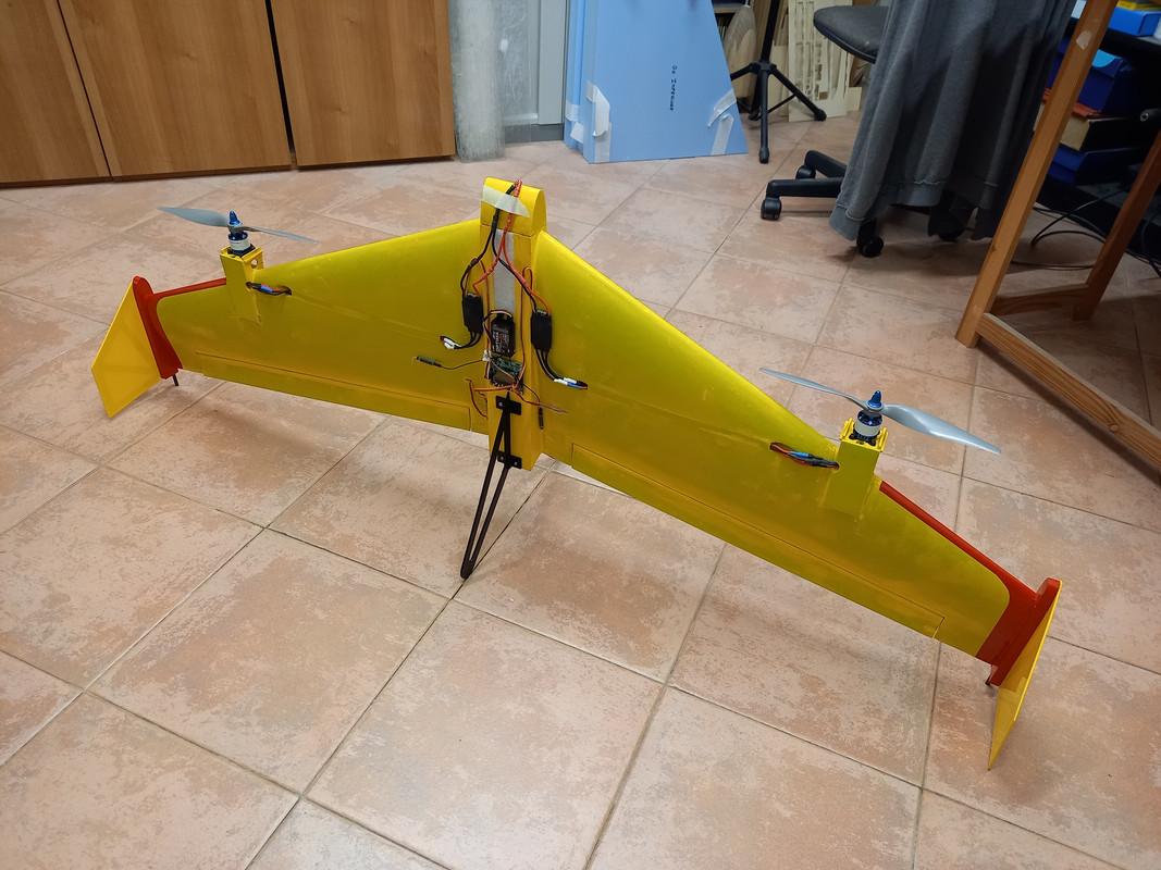 Apro una nuova discussione per non continuare a scrivere in quest’altra, che riguarda un modello diverso: https://www.baronerosso.it/forum/aer...variabile.html L’idea di un tuttala VTOL mi è venuta all’inizio di quest’anno e dopo parecchie ore di lavoro ho collaudato il modello con il tradizionale lancio a mano e atterraggio “di pancia” sull’erba. Ovviamente le prove di volo orizzontale sono indispensabili per centrare e regolare il modello prima di tentare un decollo/atterraggio in verticale. Per avere qualche dato su questo TRITOL potete guardare questo video: Dal collaudo ad oggi sono stati fatti altri voli e si è reso necessario correggere un problema serio che si presentava nelle virate strette: il modello si metteva “a coltello” ed era molto difficile riportarlo in orizzontale. Ho risolto mettendo due derive (Winglets) alle estremità delle ali. A livello estetico preferivo il modello senza superfici verticali ma in pratica il TRITOL con le derive vola molto meglio. Semplificando molto la questione, si può dire che la distribuzione ellittica della portanza impone l’uso delle derive mentre utilizzando la distribuzione “a campana” è necessario progettare l’ala con un certo svergolamento alare e profili particolari. Teoria a parte direi che il TRITOL vola bene e per il momento sono soddisfatto. Il passo successivo sarà provare a mantenere il modello in hovering a un metro da terra e verificarne la stabilità sui tre assi. Per ottenere un modello VTOL la mia idea iniziale era questa: ![]() ![]() ![]() Come si vede nelle foto la grande deriva inferiore (una sorta di terza ala…), tramite un terzo motore permette un ottimo controllo in volo verticale, dato che il TRITOL si comporta come un drone a tre eliche (in inglese, TRICOPTER). Una volta decollati, la transizione dovrebbe avvenire riducendo progressivamente la potenza del motore inferiore e aumentando quella dei motori alari. Quindi, in volo orizzontale…si dovrebbe vedere una vera e propria “T” volante. ![]() ![]() Per l’atterraggio è necessario aumentare la potenza del motore inferiore, diminuire quella dei motori alari……e scendere all’indietro. Tutto questo presume che i parametri del sistema giroscopico OpenAeroVTOL siano perfetti, il che richiederebbe un lavoro lunghissimo e inoltre il maggior carico alare causato dall’aggiunta di deriva/motore/regolatore/servo del direzionale, potrebbe rendere il modello ingovernabile in volo orizzontale. Ecco perché, per adesso, ho messo da parte l’idea della “T volante” usando invece un sistema molto più semplice e leggero: due supporti stampati in 3D dall’amico Corrado che permettono di mantenere il TRITOL in verticale al decollo e all’atterraggio. Solo 50 grammi in più e nessun problema aerodinamico e di regolazione del terzo motore. ![]() ![]() ![]() La mia esperienza con i modelli VTOL mi fa prevedere che il TRITOL in volo verticale, data la presenza dei due motori, avrà un ottimo controllo sull’asse di rollio ma potrebbe presentare dei problemi in beccheggio e imbardata che sono controllati solo dagli elevoni investiti dal flusso d’aria delle eliche. Da notare che nei “Posacoda” (Tailsitter) gli assi di rollio e imbardata (Roll e Yaw) sono invertiti nel volo orizzontale rispetto a quello verticale. Capire questa cosa, per me, è stato molto difficile…ma alla fine ci sono riuscito. ettore P.S.: oggi ho fatto per la prima volta due voli con il TRITOL. E’ molto facile da pilotare e riesce a volare anche molto lentamente. Usando lo stick del direzionale, che attiva la trazione differenziale dei motori, è possibile fare virate perfettamente piatte veramente divertenti. Ultima modifica di quenda : 16 ottobre 21 alle ore 10:57 |
