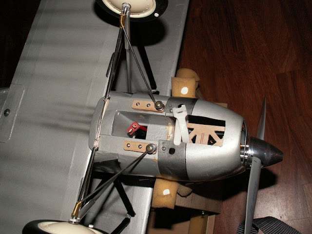 Complimenti per il lavoro! bella livrea. Era quella che avrei voluto fare sul mio ... poi la mia imperizia e pigrizia mi ha portato a verniciarlo tutto in argento. Intanto il mio é adagiato semismontato e semiriparato a prendere polvere. Devo finire di riparare il supporto del motore che si é "smontato" in volo ... non vi dico il panico per riportare a terra il modello sbilanciato e senza motore! Poco prima di toccare terra mi ha stallato e si é arrotolato a terra ... spaccando i montati della cabana e niente più. che cüu :) ciao Ruggero" |
