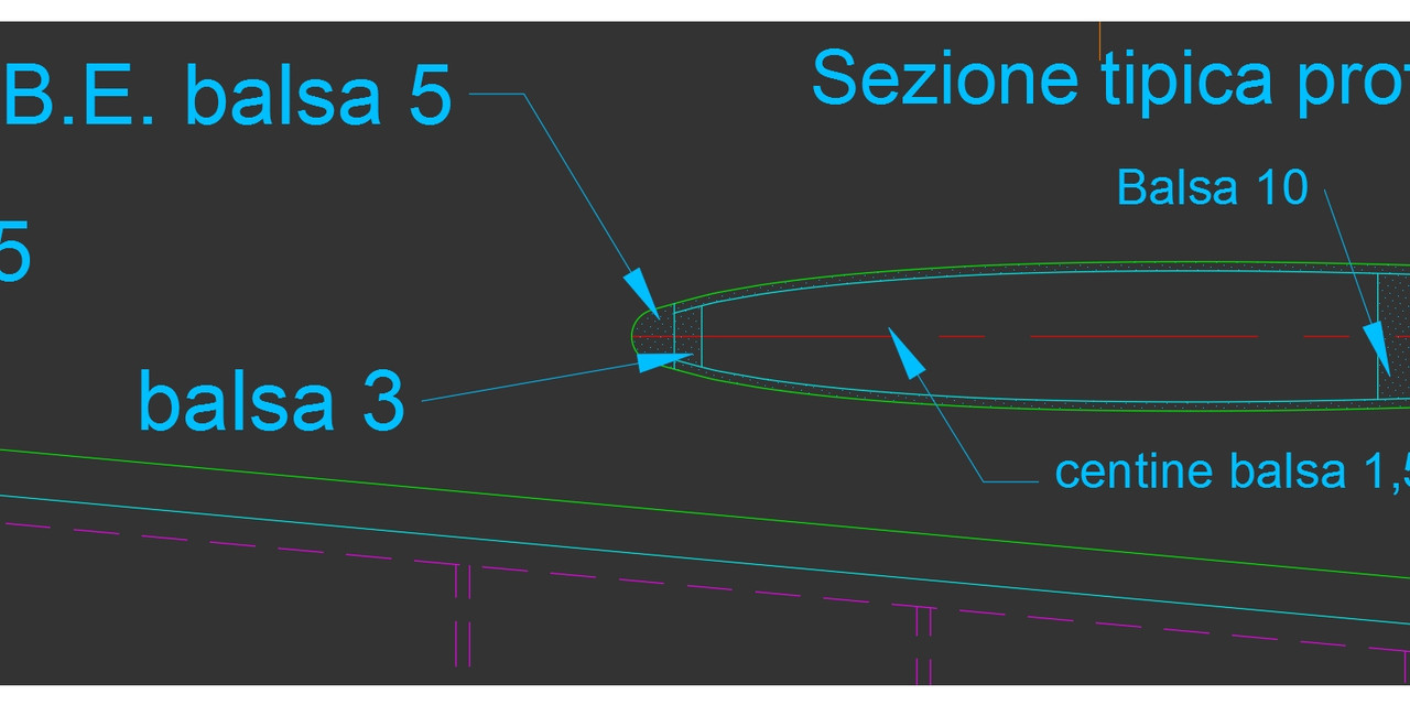 Va bene, occhio agli svergolamenti. Io uso un sistema diverso appoggio le centine contro un falso BE in balsa da 3 mm, sagomo e poi ricopro con balsa da due, infine incollo un listello in balsa da 8 o da 5 che viene sagomato secondo la forma del BE definitivo. E' più facile da fare dato che il rivestimento ha una curvatura inferiore e poi non c'è colla da carteggiare quando si arrotonda il BE.