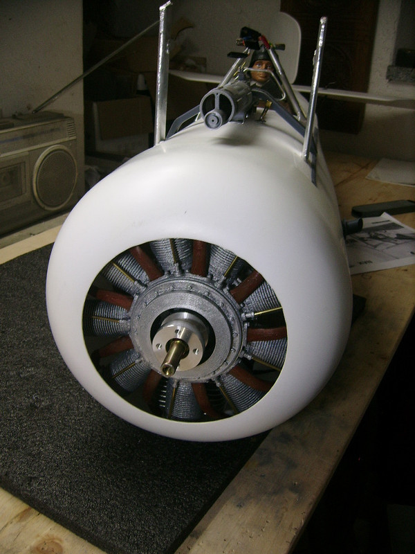 Ciao a tutti, Come detto, mi sono dedicato al fissaggio del falso rotativo al motore "vero". Per farlo, ho irrobustito la parte nascosta del motore e poi vi ho incollato un supporto rotondo in compensato da 6 mm, sulle quali ho avvitato delle staffe ricavate dopo piegatura da una lista di acciaio da 1 cm. Il supporto in legno serve anche da isolante al calore. Si vedrà poi quanto la plastica resisterà, ma sono ottimista, più o meno ![]() ![]() ![]() L'effetto non è malaccio, anche se comunque è ancora troppo... nuovo, gli farò le sporcature per renderlo più realistico più avanti ![]() C'è da dire che il modello di motore non é esattamente quello montato sui Ni.17, si tratta di un modello precedente. Infatti i condotti di alimentazione dopo qualche esperienza fatta sul campo di battaglia li avevano messi dietro i cilindri in posizione più protetta dai proiettili avversari riducendo l'effetto...... cerino volante , o almeno mi sembra di avere letto così da qualche parte. Comunque va benissimo in confronto a vedere solo il DLE nuovo lucido lucido. Adesso mi dedicherò alla finitura della capottina motore e del carrello e poi alla stesura delle finte cuciture sulle ali, quando e se mi arriveranno i nastri dalla Germania. Buona serata a tutti