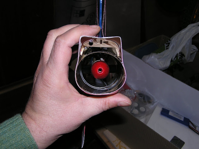 Ecco la ventola vista davanti; si noti sulla destra il regolatore, messo in una posizione dove non avrà certo problemi di surriscaldamento.