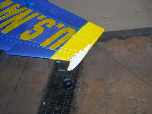 | in questa posizione eviterei lo stucco perchè potrebbe sentirsi il peso in volo dato che è perfettamente all'estremità. Personalmente opterei per la sola riverniciatura (tanto è nell'intradosso e praticamente non si vede) viceversa se ti infastidisce vedere il modello grattugiato prepara un rettangolino di depron largo e lungo come la parte da coprire, lo incolli con ciano per depron e poi ti armi di buona pazienza e carta abrasiva fine , fino a sagomarlo della forma necessaria, poi un tocco di giallo ed è come nuovo...