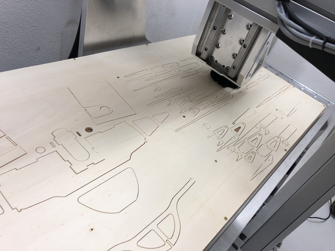 Ho finito di scalare i disegni (133.33%) Ho cominciato ad intavolarli su fogli 1000x500mm e a fare i percorsi macchina. Ho separato legno di Betulla da legno di Pippo. Per ora ho solo legno di Pioppo (Betully da 4mm ordinata ma non era disponibile quindi devo aspettare!). Adesso si tratta di andare avanti, pian piano. I fogli sono grandi e non dritti (si imbarcano facilmente). Per terli giu' in posizione, si devono mettere delle viti anche nel mezzo. Per avere la posizione giusta delle viti, in modo che non interferiscano col percorso macchina, prima fisso con quattro viti sui quattro angoli, poi faccio fare i fori delle altre extra viti direttamente alla fresa, avendo pratricato i fori sul disegno originale dove c'era lo spazio disponibile. Dopo lancio il resto. A presto, Andrea |