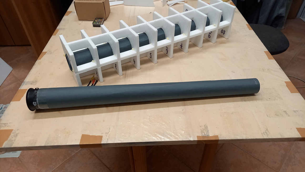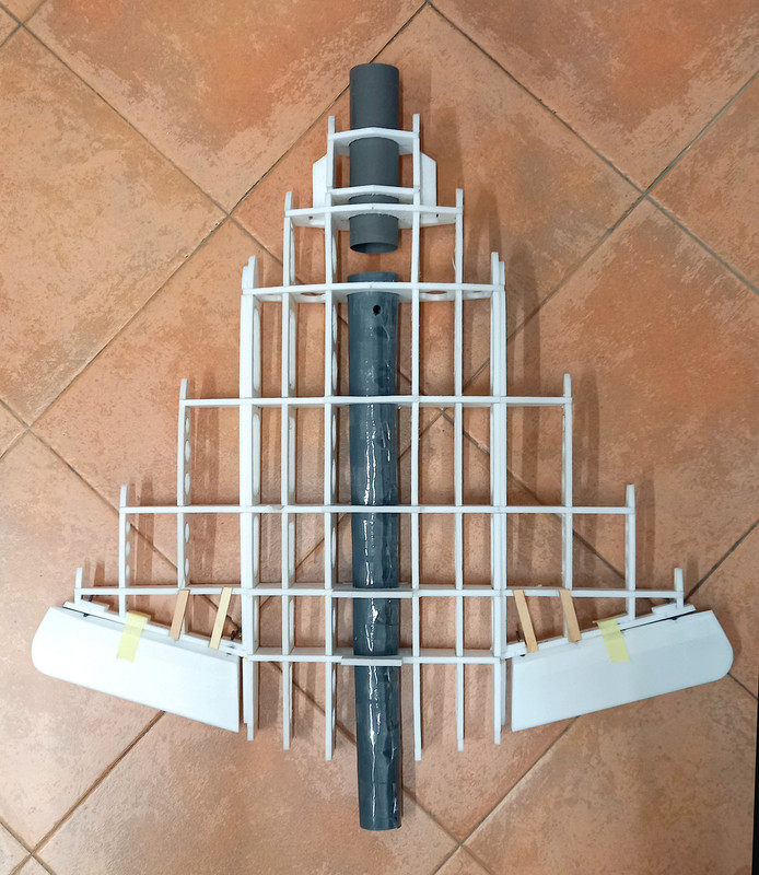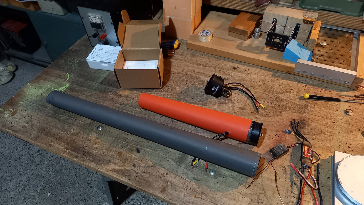 Finalmente, con l'aiuto dell'amico Fausto, sono riuscito a fare il test riguardante il lungo tubo di scarico della ventola. Qualche dato: Ventola XFLY-MODEL GALAXY X5 da 50 mm. con motore da 4.600Kv per batteria Li-Po da 4 celle. Batteria FullPower Li-Po a 4 celle da 2.200 MAh., 50C. caricata al 100%. Regolatore HobbyWing da 40A (60A Max) Tubo di scarico posteriore A: 28 cm. lunghezza Tubo di scarico posteriore B: 56 cm. di lunghezza In entrambi i tubi il diametro di uscita è di 42 mm. che corrisponde a circa il 95% della Fan Sweep Area. ![]() ![]() ![]() Come in precedenza abbiamo misurato la spinta statica tenendo la ventola e il tubo di scarico in verticale con l'uscita a qualche centimetro dal piatto di una bilancia digitale. Assorbimento e potenza sono stati misurati con un comune "Watt Meter" inserito tra la batteria e il regolatore. Tubo di scarico A da 28 cm.: spinta statica di 1.040 grammi, assorbimento massimo di 42A e potenza massima di 650 Watt. Tubo di scarico B da 56 cm.: spinta statica di circa 910 grammi, assorbimento massimo di 43A e potenza massima di 640Watt. Come previsto il tubo di scarico lungo produce una perdita di spinta statica di circa 130 grammi. In ogni modo una spinta di circa 910 grammi mi soddisfa pienamente dato che il Lippisch P.13a sul quale verrà istallata la ventola da 50 mm., dovrebbe pesare 900 grammi e in definitiva potrei ottenere un rapporto peso/potenza di circa 1:1. A breve aprirò una discussione dedicata al famigerato.....aereo a carbonella ![]() Ciao! ettore P.S.: nella prima foto si vede una mia invenzione originale al 100%: uno scaletto in Depron per realizzare facilmente il tubo di scarico in cartoncino. |
