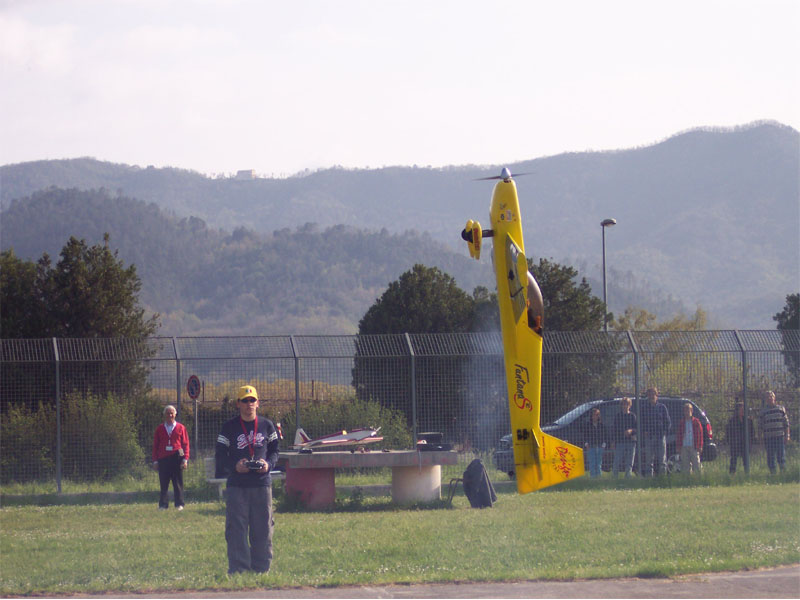 dai, inizio io visto che amo il 3D all'inverosimile! posso spendere 2 paroline sul mio f90... è un modello fantastico, nel 3d non ha eguali, anche se pecca nel coltello, ed è preciso quanto basta! veramente un mostro! il mio equipaggiamento è: - yamada ys110fz con una apc 16x6 e miscela al 30% nitro e 22% olio, con una os f... mi consente di fare hovering ad altezza occhi con risalite paurose, verticali infinite, e non perde mai un colpo! se lo metto al minimo in qualunque momento ci va e ci stà anche in discesa verticale, sembra quasi spento! veramente lo consiglio a tutti - l'apparato radio è costituito da una rx futaba 149d (pcm 9ch) alimentata da 5 celle sanyo 1400mAh Ni-cad (che probabilmente verranno sostituite in futuro da 2 celle tp..) e uso un s3001 per l'acceleratore, 4 s3010 per profondità e alettoni (nei prossimi giorni comprerò 2 hs6965 per gli alettoni) e un hs5975 per la deriva modifiche "importanti" non ce ne sono, a parte il carrello in carbonio e un fazzolettino di carbonio sulla deriva... giusto perchè se atterro in paracadutale sulla pista si scartavetra quello e non la balsa... mi devo ripetere, il modello è ottimo e se tornassi indietro di certo lo prenderei di nuovo, quando volo mi da sempre delle soddisfazioni... ormai non c'è alcuna manovra che non faccia con lui, mi ha portato ad un buon livello di pilotaggio acro. come non citare anche il mio Extra 330l 2x2 composite arf? il modello aveva 6 voli quando purtroppo per un problema di motore che si è spento in paracadutale rovescia bassa è andato distrutto... e ora ne ho un altro a casa quasi pronto per volare... - il motore è un da50 con un canister zimmerman, gira con la v-power e il 2,5% di sintetico elf da supercross (in questo momento non ricordo la sigla), la potenza è fin troppa, fare l'hovering a 1/3 di potenza con un 2t è difficiletto... comunque dopo aver cambiato le membrane sul carburatore sembra andare che è una favola... almeno al banco... intanto non da più problemi di accensione... - come elettronica ho una rx 149d alimentata da 2 celle duralite da 2000mAh col loro regolatore da 6V, che controlla 3 servi hs5945 in coda, 2 hs5925 nelle ali, un s3010 per l'acceleratore e un hs81 per l'aria. l'accensione elettronica è alimentata da 4 celle sanyo 1700mAh Ni-cad, e per la rx sto cercando di convincere mio padre a lasciarmi prendere l'interruttore della Fromeco (quello figo, blu con la bandierina) modifiche? qualcuna, il sistema di montaggio della cappottina tipo il funtana, le squadrette metalliche per profondità e deriva al posto delle sue fenoliche e sul momento non mi viene in mente nient'altro in volo è fenomenale, in verticale ci mette proprio poco a sparire, i fischi sono fantastici e il volo è stabile e facile. uniche pecche la mancanza di compensatori sul profondità che rende molto difficili l'esecuzione di manovre tipo wall, harriering e roba varia, e la limitata escursione verso il basso di profondità e alettoni, che per il modo in cui sono costruiti non hanno alcun limite fisico verso l'alto (hehe, 180° di escursione! poi va beh, gli ho appiccicato alcuni adesivi sboroni... ho lo ucd46, ma motorizzato st51 non ha la potenza necessaria per fare hovering e 3d serio... appena possibile un bel ys63 e via... comprato da poco il mini edge 540 della fliton, hacker a30 16m, tp2100, esc lipotech evo3 30A, apc 11x4,7 (ma ne proverò altre), 4x hs55, jeti 7ch, carrello in carbonio alewings..... è una favola, veramente! vola anche meglio del funtana! e la qualità fliton.. imbattibile! uno yak 54 della ikarus (mh... un po storto...), axi 2208/12 (forse..) evp, elica a passo variabile ikarus, 4x hs55, 3s tp1320 (grossette...), esc lipotech 20A, jeti rex 5ch, nessun mod, a parte la vpp... che comunque è un po una cag... consiglio 1: volate molto alti e veloci per salvare gli aerei consiglio 2: volate molto bassi e lenti per imparare il 3d.. altri non me ne vengono in mente... (mamma mia che pappardella! )