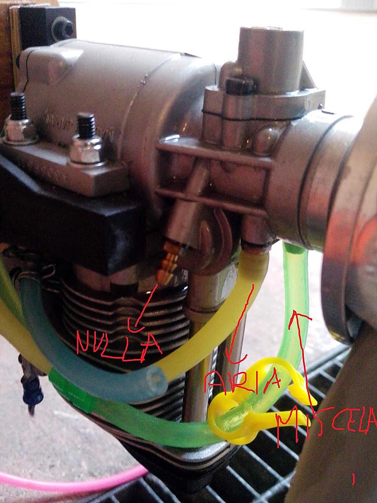 Nella prima foto c'è un nipple con scritto "nulla" : da lì esce la miscela che va al carburatore, per cui riposiziona sul nipple il tubetto azzurro che appare staccato. La fusione del pressostato, così come appare nelle foto, è montata correttamente, non girarla. Il diaphragm va bene così, una volta li facevano tondi e ora sono fatti come vedi. Tendono col tempo a deformarsi, per questo quello precedente ti sembra una bolla, ma nasce piatto. Come ti hanno scritto gli amici del forum, se lo hai lasciato fermo un certo periodo, l'olio tende a incollare ed è giusto eseguire un "lavaggio" a motore spento togliendo la candela, avendo poi cura di lubrificare il tutto prima di metterlo in moto con un olio fluido, tipo quello bianco per armi. L'unica miscela che non incolla anche dopo un anno è la Cool Power, che al momento non si trova ma che potrebbe arrivare nuovamente in Italia, vi farò sapere quando avrò notizie certe. Quando lo provi, fai il pieno, due giri di spillo, senza dare contatto alla candela fai girare l'elica a mano e successivamente con l'avviatore per qualche secondo. Se hai collegato i tubi correttamente e se la check valve è montata nel verso giusto, dovresti vedere la miscela che arriva. Cambia il tubo colorato dell'alimentazione con uno di silicone trasparente, così la vedi arrivare. Quando la vedi arrivare collega la candela e riprova, dovrebbe partire. Sia io che Toio abbiamo mandato un motore in Giappone, è tornato nuovo e Mr Yamada è di una gentilezza assoluta. Se hai problemi mandami un mp Ciao |