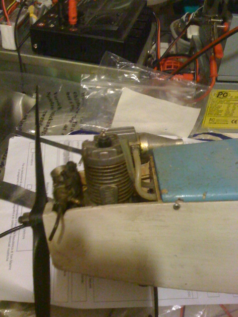 Kosmic, che sia questo il 3,5 cc? il carburatore è un super tigre, se non ricordo male in origine era un perry. il modello ha gli stessi anni piu o meno del motore, 30 o piu', ogni tanto lo ritiro su...