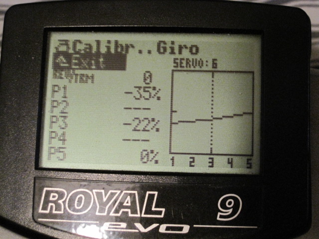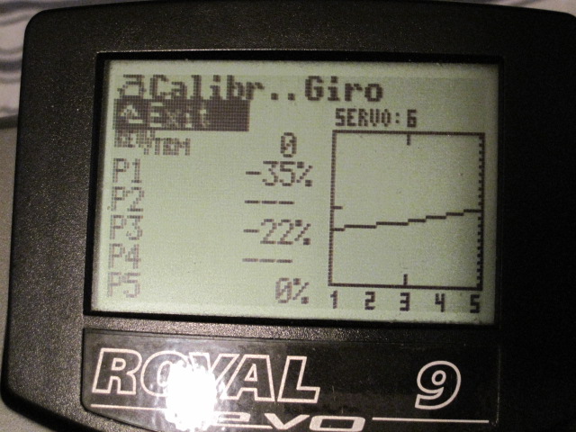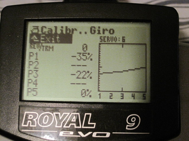 al 99,9999999999999% il giro è lo stesso, le istruzioni poi mi sembrano identiche. veniamo ai settaggi, allora questo essendo un gyro per elicotteri prevede un po' di settaggi.. settaggi che si fanno con un canale libero della radio, con corsa da -100 a 0 il giro corregge ma se lasciamo lo stick del comando dove agisce il gyro, il servo ritorna correttamente a zero, andando da 0 a +100 il giro corregge sempre solo che la posizione del servo rimane sull'ultima posizione data dallo stick, anche se lo riporti al centro.. in definitiva non so a cosa serva per gli ely ( non li ho mai provati) ma per usarlo sugli aereoplani il comando della regolazione va messo da -100 a 0, la parte positiva non va usata; altrimenti credo succeda quello che hai detto tu. Per le impostazioni che ho fatto hai detto bene, su un interuttore libero gli ho assegnato un canale cosi settato: prima posizione corsa servo zero, tutto spento seconda posizione -22 terza posizione -35 i valori poi li metti tu provando in volo il modello. foto, con l'interruttore nella prima posizione ho il valore zero, valore di P5, giro spento poi nella seconda posizione, valore P3 -22% terza posizione valore -35% valore P1 forse cosi si capisce ancora meglio, nota l'interruttore L sulla sinistra e il valore della corsa del canale numero 6, posizione zero tutto spento: posizione due, giro acceso, valore -22%: terza posizione, valore -35% ciaooooooooo Ultima modifica di il_Zott : 25 febbraio 10 alle ore 20:47 | |