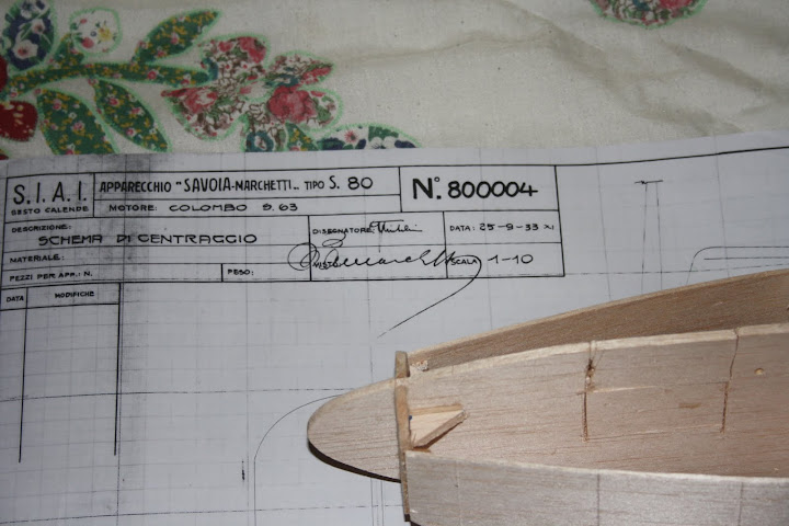 Visto che lo staff mai ci ha minimamente considerato quando chiedevamo uno spazio per gli idro, posto qui l'ultimo progetto del babbo Masali: Melchiorre, classe 1931 (ehi babbo, quest'anno sono 80!), aeromodellista da sempre, da poco traviato all'elettrico dal figlio degenere (io). L'aereo è l'SM80, e merita pubblicare la lettera al presidente dell'aeroclub di Como Aristide Cappellini con cui il babbo Masali ringrazia dei disegni: La ringrazio per l'invio dei disegni dell'SM 80 di cui ho iniziato la costruzione di un modello in scala 1:10 partendo da una copia di un lucido firmato di pugno dall'ing. Marchetti. Questo disegno che mostra solo la vista laterale essendo lo schema di centraggio dell'aereo, mi era stato fornito dalla Sig.ra Loretta dell'Associazione degli Amici della Savoia Marchetti di Cascina Malpensa. I Vostri disegni sono stati utilissimi per stabilire le sezioni dello scafo e la pianta alare. Come può vedere ho iniziato la costruzione tradizionale in balsa (son un po' all'antica...!) Come Le dicevo, sono un vecchio professore d'Antropologia fisica (naturalistica) dell'Università di Torino, con il pallino dell'aeromodellismo (non a caso ora mi occupo d'abitabilità /adattabilità /exaptabilità umana agli 'ambienti estremi ed in particolare a quello spaziale!) e mi stavo interessando, per farne un aeromodello, del SIAI Marchetti SM 80 che ricordavo esposto sia al Museo di Trento che in quello di Volandia a Cascina Malpensa. Tale aereo SM 80 Bis, il bimotore) mi ricorda la frequentazione da ragazzo dell'AeroClub di Como dove era il pezzo forte pilotato da Nello Valzania (ho volato con Lui sul Republic SeaBee). . Grazie se potrà farmi avere anche i disegni dell'SM80 BIS! Voglia con l'occasione gradire i migliori saluti Melchiorre Masali Ecco dunque il primo balsa tagliato direttamente sui progetti citati dal genitore, quelli appunto firmati di suo pugno da Marchetti in persona: Qui si può notare il curioso, ma efficace metodo di lavoro del babbo Masali (ereditato pure dal figlio, ahimé): non fare progetti completi ma disegnare man mano quel che serve. E pure le ordinate, decidere quante ne servono man mano che la costruzione avanza e si evidenziano le necessità strutturali e geometriche: Ecco il baricentro (anzi, i baricentri) di quello vero: E l'aereo com'era: