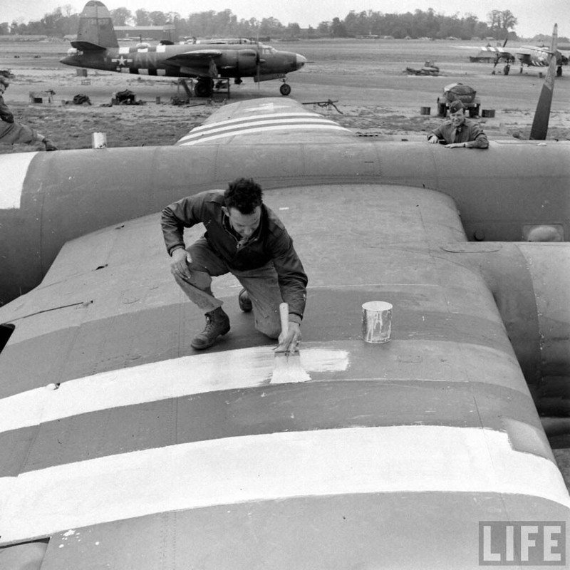Quelle righe bianche, erano le strisce di invasione, si preparavano al D day, 6 Giugno 1944, pensi davvero che perdessero tempo con le pitture lucide/opache od altro? Questa mania è conosciuta come sega mentale.
