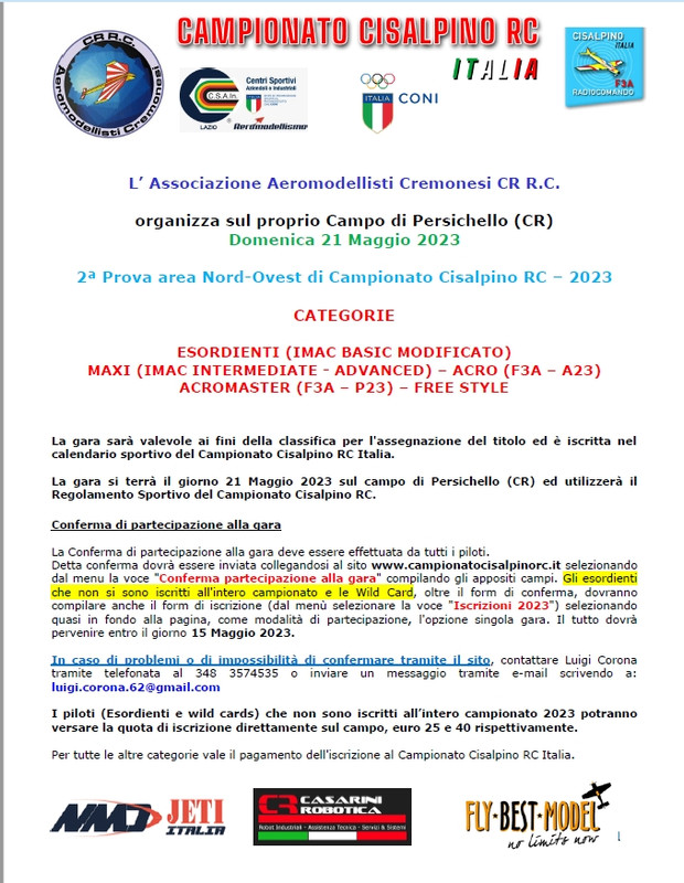 | Campo Gaudio, Cremona | manubrio | Aeromodellismo Alianti | 9 | 24 aprile 12 00:49 |