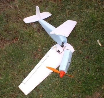 Dopo essermi scontrato con un corpo solido chiamato "Pianeta Terra" ecco cosa è rimasto del mio ultimo modello, una specie di bf-109 elettrico estremamente modificato. Per essere sopravvissuto 10 minuti ha dimostrato di essere un ottimo acrobatico, per suo sfortuna il pilota era un vero incompetente. Colgo l'occasione per chiedere se qualcuno ha il progetto dello yak-54 della foamy factory. Ciao e Buone feste a tutti. |