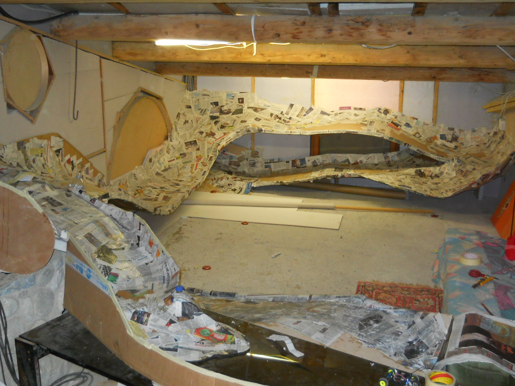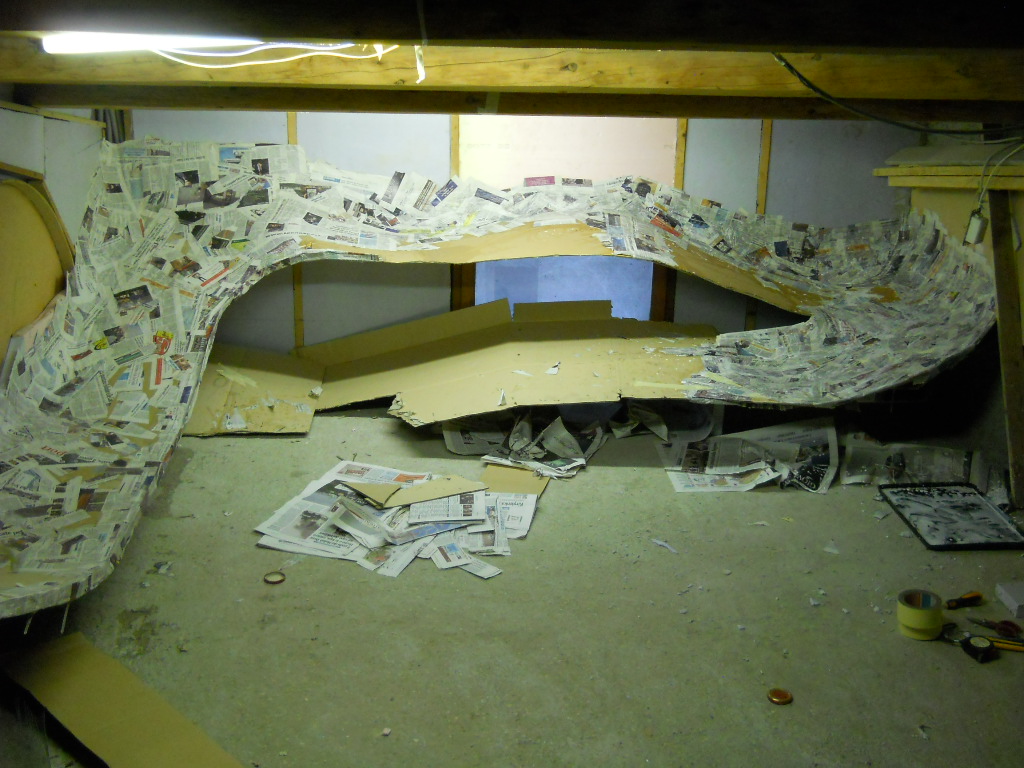grazie franci ho usato cartoni come base e poi avanti con la " cartapesta"..........ho fatto fuori più di 10 litri di colla bianca ( diluita sicuramente 50 litri ..... e un terribile mal di schiena )sulla carta ho incollato della stoffa , e sui tratti piu " impegantivi " della moquette ( più gripp ) ciao dani |