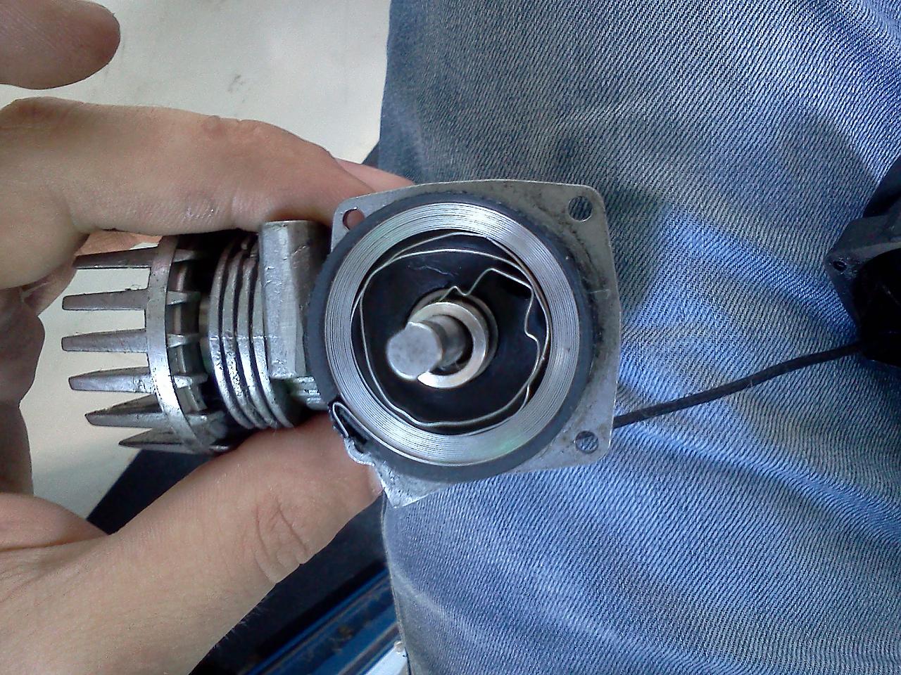 Tra l'impugnatura e la cassa dello strappino intreponi una molla o almeno 3 cm di tubo mix per evitare contraccolpi al meccanismo quando il motore si ferma.