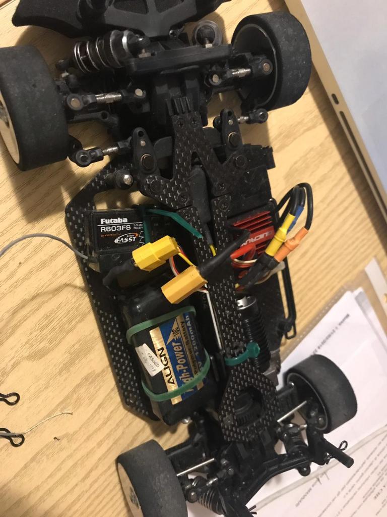 Comunque per quanto riguarda la configurazione: la ricevente di solito viene montata sull’altro lato attaccata col biadesivo, mentre la batteria si fissa con del nastro telato apposta, io sulla mia t4 uso Hudy ma costa parecchio, magari trovi qualcosa di più cip... recupera se riesci qualche attrezzo per regolare almeno il camber e le altezze da terra giusto per non trovarti tutto sballato dopo la prima uscita, attento anche alle temperature, non hai ventola ne sul regolatore ne sul motore quindi quando arriverà il caldo orologio alla mano e sessioni da 5/6min al massimo, poi fai raffreddare e riparti...