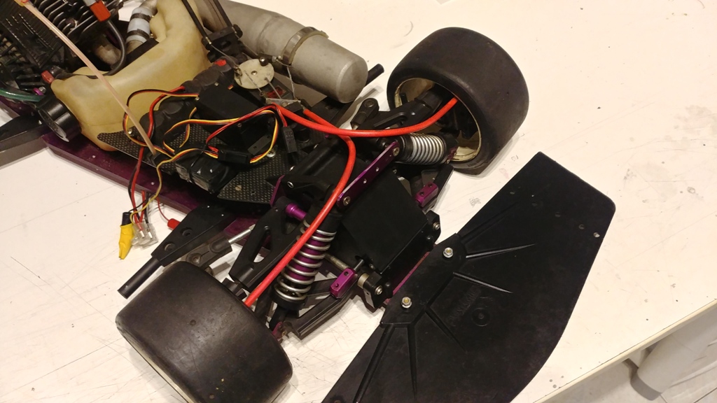 Buongiorno a tutti! Non sono nuovo del forum ma della sezione sì, mi presento al volo: mi chiamo Alessio, ho 40 anni e dopo una lunga militanza nell'elimodellismo terminata ormai diversi anni fa sono tornato al mio primo amore con un buggy EB4 S2 PRO Nitro che ho restaurato e che faccio felicemente trottare al 25% quando il tempo (libero) lo permette. Veniamo al quesito: con un amico abbiamo preso d'occasione la bestiola che vedete in foto: premesso che ho già cercato notizie usando la ricerca avanza del forum trovando un solo ma utilissimo post di diversi anni fa (https://www.baronerosso.it/forum/aut...-5-regalo.html) che mi ha permesso intanto di risalire alla marca (Dynamic) e al periodo di produzione del modello (anni '90, ben prima che fosse tutto reperibile in Rete) e di azzardare che quella in nostro possesso, con chassis in ergal e piastra servi in carbonio, sia una versione "PRO" del modello oggetto del post di cui sopra. Premesso ancora che ho già scritto a Bergonzoni qualche giorno fa e che sono in attesa di riscontro, vorrei sapere se qualcuno di voi sa di quale modello si tratta e se esiste un modo di reperirne i ricambi (di cui dopo rapida ispezione e primi controlli e ripristini non sembra aver bisogno, almeno per i primi test ma non si sa mai). Il modello è equipaggiato con un motore Fox F7 e di una "massiccissima" radio in FM HiTec Linx 3D perfettamente funzionante (e molto soddisfacente da impugnare). Riguardo al motore, ho fatto un giro sul sito della Foxmotori, scoprendo le origini... agresti del monocilindrico e che la serie F7 è andata incontro a diversi aggiornamenti nel corso degli anni (non meno di 45, a giudicare dalle foto) ma non so altro... non so se è un 22 o un 23 cc. ne se digerisce la verde ne se posso prendere per buone le informazioni che ho trovato su percentuale di olio nella miscela (la versione agricola riportava alcune istruzioni rapide sul copri-ventola). Va da sé che ho interpellato anche la Fox Motori e sono in attesa di riscontro anche da loro. Soprattutto, non so dove reperire un filtro dell'aria, l'unica cosa di cui c'è veramente bisogno. Il quadro è completato da una imponente carrozzeria Alfa 155 Touring... decorata con la livrea della Polizia di Stato (ah, altra cosa che manca: i supporti anteriori per la carrozzeria). Ciò detto e conscio delle differenze che ci sono con le 1/8 Nitro a cui sono più abituato, qualunque consiglio generale su questa categoria di modelli o in particolare su questo modello è più che ben accetto. Saluti e grazie a tutti! |