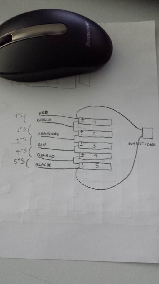 Intanto GRAZIE mille per la risposta... Poi, il cavo a sinistra è quello di bilanciamento, giusto??...il cavo di destra è quello dove collego il +e- della carica e lo stesso dove prelevo i 18V (3.6v*5) che mi servono, giusto??... Però ho un'altra domanda...il bilanciamento si usa solo per i pacchi con molte celle in serie, o anche per quelli con le celle in parallelo??... Tipo, se io ho delle celle (40) da 2500mAh e voglio un pacco da 36V (10S) e 10000mAh (4P) come va costruito il pacco (10S4P)??...si può sembre bilanciare o si usano altri metodi di ricarica??... |