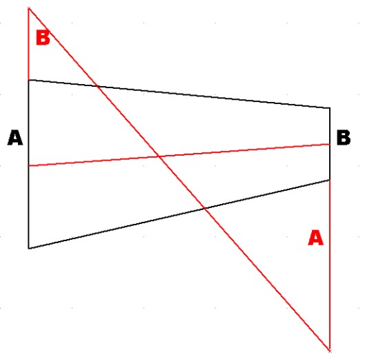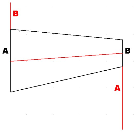 Si disegna l'ala in pianta con "A" che sta per corda di radice e "B" per corda di estremità.