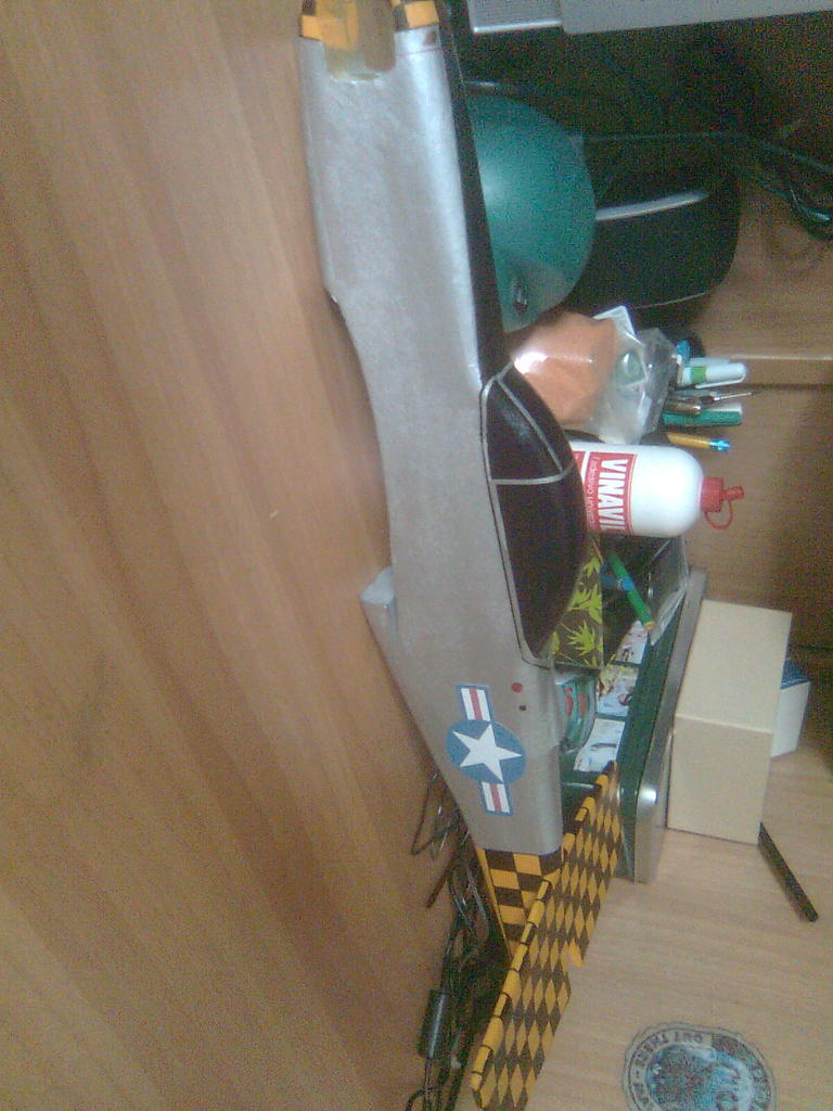 ormai utilizzo i vecchi e fidati spry della tamya...costano un occhio della testa ma un risultato(sopratutto questo argento) da paura!!! con una bomboletta cho fatto il sopra dell ala e tutta la fusoliera... nella prima foto ho iniziato la mascheratura per la cappottina ed una decorazione sulla parte avanzata del muso...ciaoooooooooo ps:penso ormai che entro questa settimana si collauda...