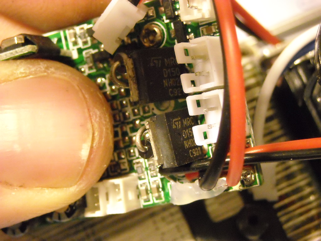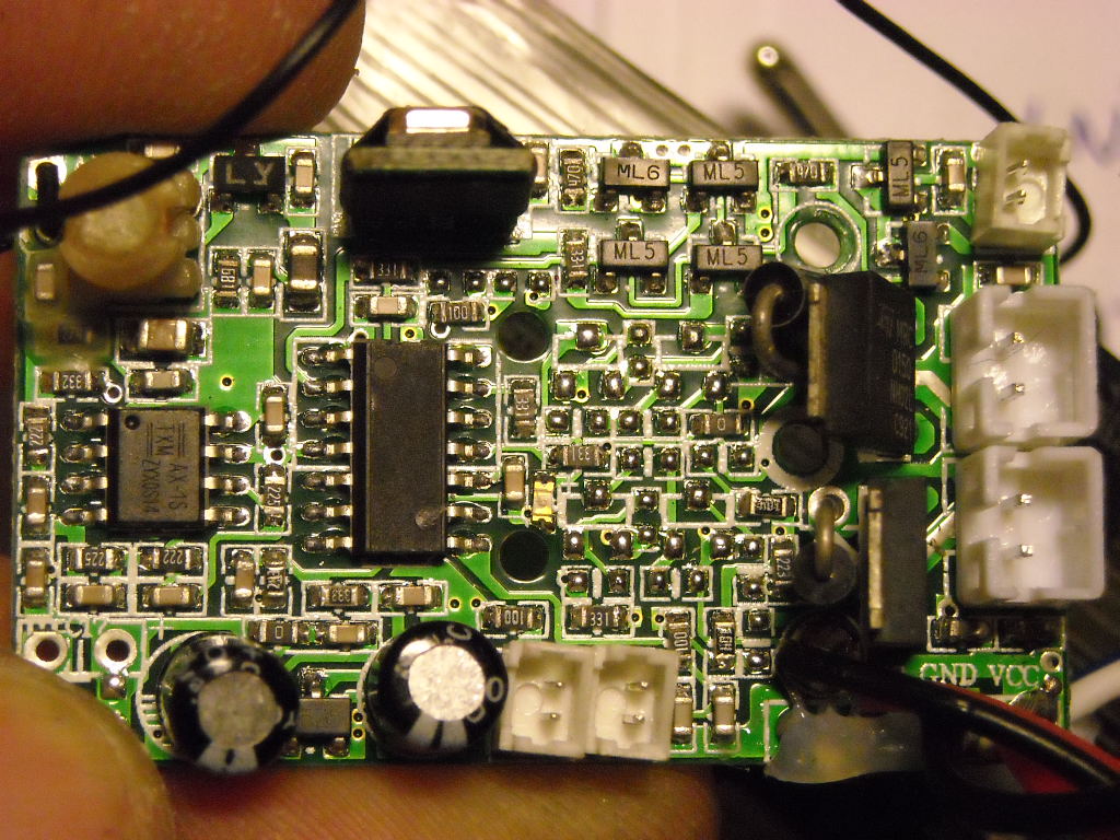 .Lo avevo comprato da pochi giorni e girava benino quando in quota ho preso un angolo del muro , le pale si sono bloccate ed è caduto per terra diciamo da due metri e mezzo di altezza. Ovviamente si accendeva, poi davo gas e sentivo un rumore soffocato e le pale immobili, il rotore di coda era tutto ok. Ho contattato subito il negoziante che spedito all' assistenza di milano dopo tre mesi finalmente risponde che è la mixing board e che non è in garanzia, deve essere sostituita e ci vogliono più di 60 euro (vabbè pure io potevo cambiare la scheda). Li ringrazio, e do' l'ordine di rispedirmelo subito così com'era, a costo di vendermi i pezzi su e-bay non glielo lasciavo. il modello prevede la scheda integrata che prende l'alimentazione dalla lipo (3,7 V non 7,4 come avevo detto prima) e gli unici spinotti di output sono i tre connettori per i motori; in pratica la scheda controlla tutto. Sicuramente non è tutta da buttare ma come faccio a capire dove si trova il difetto o bypassarlo senza gli schemi logici? Questa settimana riprendo possesso del modello e posto una foto della scheda per scrupolo. Prendo poi le misure di ingombro per capire quale arduino posso installare, cerco di capire il voltaggio, l'assorbimento dei motori, e cerco di capire di quali shield necessito. Magari per i mosfet vedo quali sono impiegati e se hanno un dissipatore; non userei gli stessi: se fosse proprio lì il problema? Sicuramente posso trovare per 30 euro un modello estremamente simile, ma il bello sarebbe appunto vincere il senso di impotenza di questo RTF e imparare la programmazione di un microcontroller.Per volare c'è sempre il mio t-rex 500