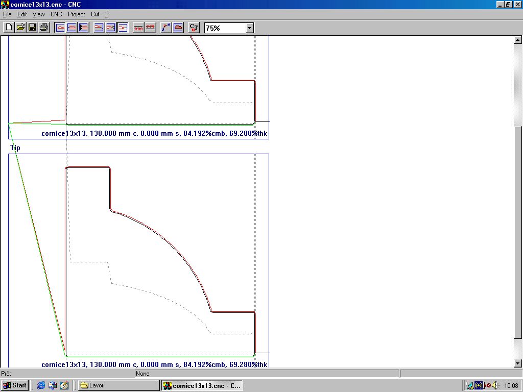 Amici, uso la versione 2.03 (free) di CNC e tutte le volte che tento di tagliare una forma diversa da un profilo ottengo messaggi d'errore. Per me il problema è la formattazione del DAT ma non riesco a veder niente di anomalo. Se riesco allego screen captures e il DAT di una forma che vorrei tagliare. Aiutatemi Ciao PINO ![]() ![]() cornice13x13.txt |