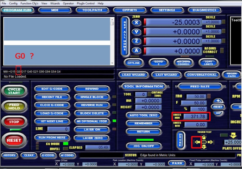 in ricerca a tuta velocità (feedrate F 50 Units min 371.78 ) si legge nella foto , ma
