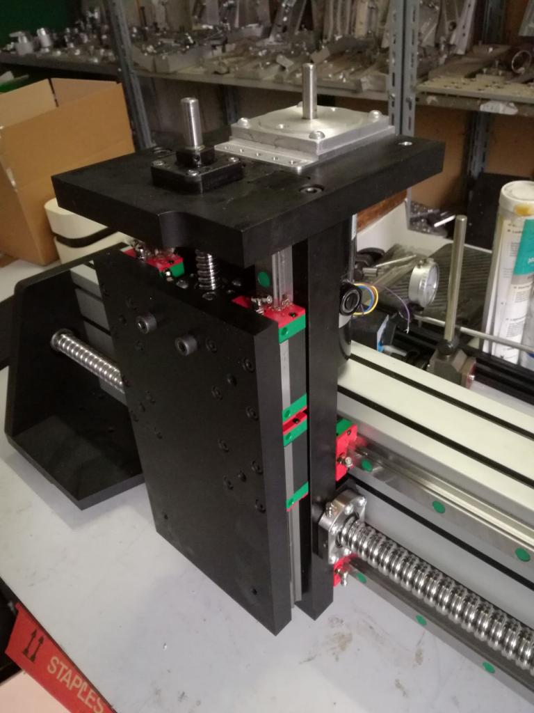 seconda paranoia: -guide di X ovvero: le posiziono sopra in profilato con il ponte in appoggio, o si lato? Qui a posteriori dico che mi sono fatto davvero troppe seghe mentali e mi sono perso nei calcoli. In soldoni la mia preoccupazione era la tenuta dei pattini ad un eventuale intraversamento del ponte. Volevo attenuare il più possibile le eventuali forse torsionali. E allo stesso tempo trovare la posizione più efficiente e adeguata per le due enormi viti a ricircolo che avrebbero spinto il ponte. Insomma minore sarebbe stata la distanza tra viti e guide, minore risulterebbe essere il braccio di leva.... Decisi inoltre per allineare orizzontalmente le guide e viti. Anche per una facilità di montaggio e allineamento delle guide sui profilati ( tolleranza complanare e di parallelismo) Il problema è che così come le ho fatte sono improteggibili, è impossibile mettereci dei soffietti, dovrei costruire un enorme carter che avvolge il tutto. Forse se avessi messo le guide sul lato, con le guide allineate verticalmente, il risultato sarebbe stato lo stesso per quanto riguarda le flessioni con il gran vantaggio che sarebbero state più protette dao trucioli. Sulla questione di come ho montato le guide sui profili. In pratica ho montato una guida al profilo serrando debolmente le viti, non avendo alcun riferimento laterale mi son fatto fresare una squadra a L su cui poggiare la guida temporaneamente prima di serrare le viti alla giusta coppia. Scorrendo poi con il comparatore fissato ad un carrello e puntato sul lato del profilo, ho controllato l'allineamento. O meglio, che la guida fosse storta quanto il profilo Fatto ciò, sapendo che il ponte completamente montato con tutti i riferimenti ad incastro deve avere una grande precisione (o almeno dovrebbe) sul parallelismo dei carrelli di X...lo monto sulla struttura principale con una guida fissata precisa e l'altra completamente libera di muoversi. Faccio scorrere il ponte a mano su e giù e poi serro le viti man mano... ..cosi mi sono garantito almeno il parallelismo tra le due guide. Per la complanarità di due guide così lunghe, l'unico metodo che ho creduto utile è stato quello di verificare man mano la struttura con una bolla centesimale....avete altre idee? |