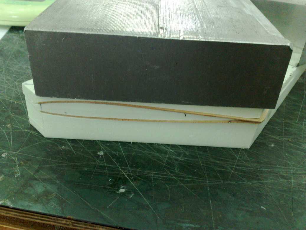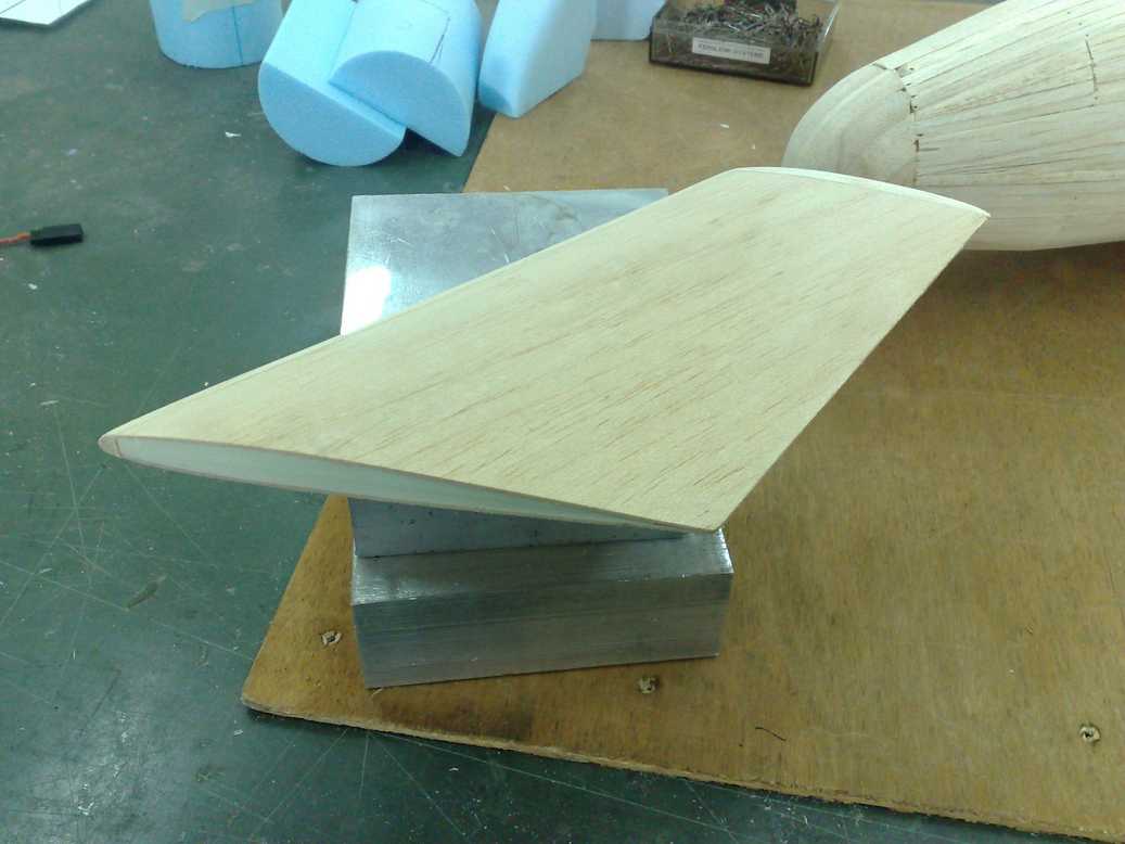 un altro piccolo lavoretto di un'oretta e mezza.. tagliato a macchina direzionale in polistirene, preparato balsa da 1mm per ricopertura, fatto sandwich con i controstampi del profilo, incollato bordo di attacco e terminale in balsa. terminale grezzo finito. di sicuro centinato sarebbe venuto molto più leggero, ma l'altro aereo mi toglie molto del tempo per questo (a cui comunque non rinuncio..) Manu