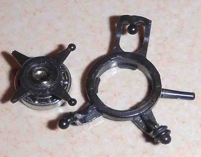 E' normale che l'anello in plastica che tiene il cuscinetto a sfera dello swashplate sia aperto in corrispondenza del link del pitch ? Oggi in un hovering ho colpito una poltrona morbida con una pala e si è sfilato il cuscinetto dello swashplate. Al momento di rimetterlo a posto ho notato che l'anello non è chiuso, ma non sembra rotto perché l'apertura è proprio al centro ed è perfettamente liscia. Il mio è un v2 as3x. |