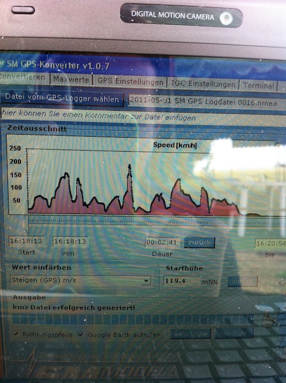 Ciao a tutti, oggi sono andato per pura curiosità a volare col Protoz con installato il Gps Logger...con quesi 16 gradi di passo, 13T , curva 90% ha preso delle velocità fuori dal normale... Tral'altro vento zero!! Un proiettile! Lo chiamerò il TDProtos... Devo dire che i dati rilevati mi hanno fatto prendere spavento! Giudicate voi di cosa è capace il Made in italy!! Prima o poi il 2 davanti lo metterò... Ciaus!