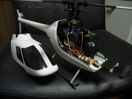 Ti danno la fusoliera come la vedi in foto, devi solo forare il sopra per far uscire la testa con i leveraggi e fare i quattro fori per il carrello. In volo è uno spettacolo e nonostante tutto sia un eli elettrico in fusoliera devi vedere come venivano tonneau looping flip e volo rovescio !!! | |