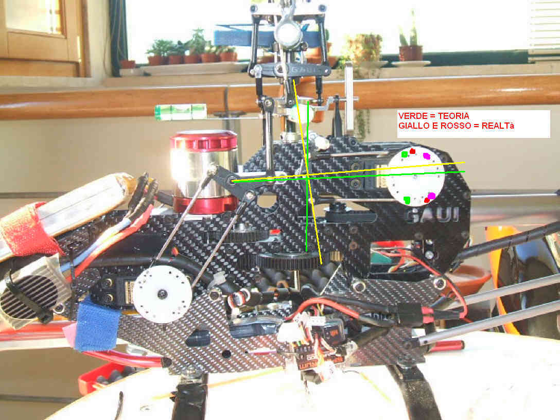 Ho messo in bolla tutto: fly, albero perpendicolare, swash, tavolo, ... pavimento e fondazioni della casa. subtrim e trim = 0 passo = 0 1) squadrette: non hanno mille righe quindi impossibile muoverle di circa 1,5 mm: come le vedi (righe gialle) è la massima approssimazione ottenibile. 2) Escluso che possa mettere i rinvii nei fori come da dima del manuale, a meno di non tagliarne qualche mm: sono gia' quasi completamente avvitate e portarle in avanti significherebbe doverle accorciare ulteriormente. forse vanno sui buchi viola? Grazie del supporto in diretta :-) ciao, Luigi-Mongo(loyd) Ultima modifica di Mongolfino : 30 novembre 08 alle ore 16:53 |