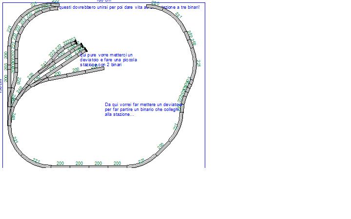 Ciao Gabriele, aprio io la discussione relativa al tuo plastico ![]() Questo è il tracciato originario ma se ho capito bene vorresti unire le tre linee sulla destra. Giusto? Mi confermi anche le misure?